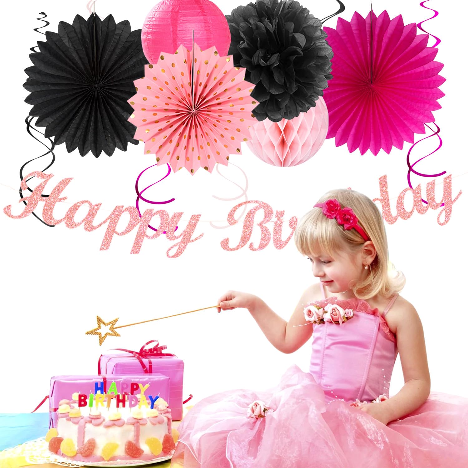 【Wide Application】This birthday party decorations kit have been used for all kinds of parties and special occasions Perfect for hot pink and black birthday,baby girl women birthday decorations.