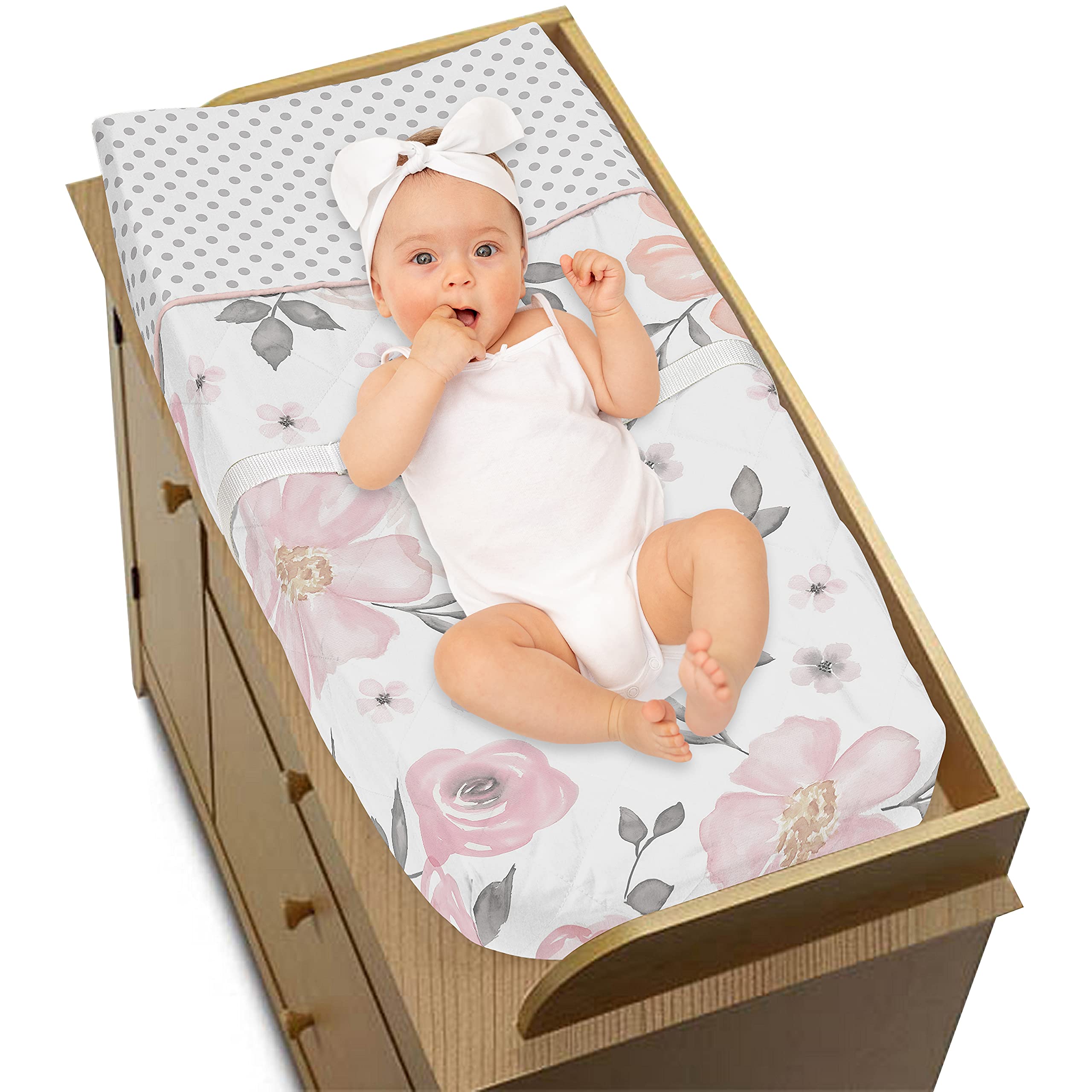 BABY ITEMS MUST HAVES: Diaper Changing Pad Cover (17in. x 32in.). Designed in the USA with moisture wicking, super soft brushed microfiber fabric. Machine washable, tumble dry low. This vibrant changing pad cover case for girls would pair perfectly with coordinating bedding sets and match with the Blush Pink and Grey Watercolor Floral Flower Rose Floral Collection accessories to complete your newborn/infants nursery themed look.