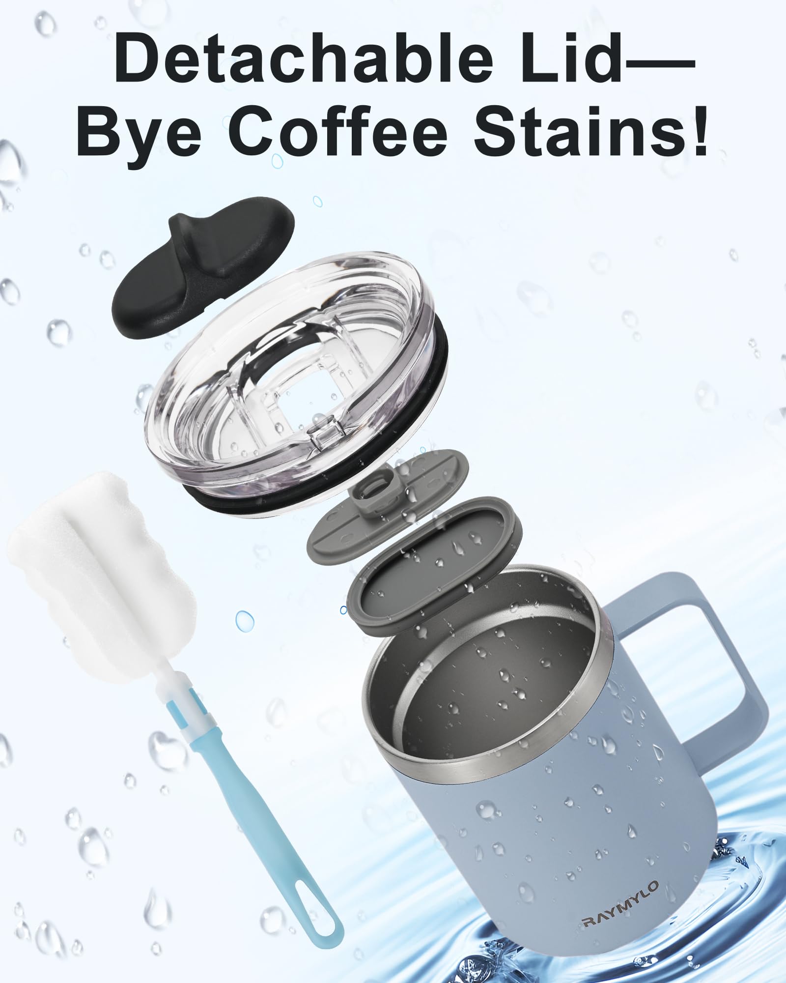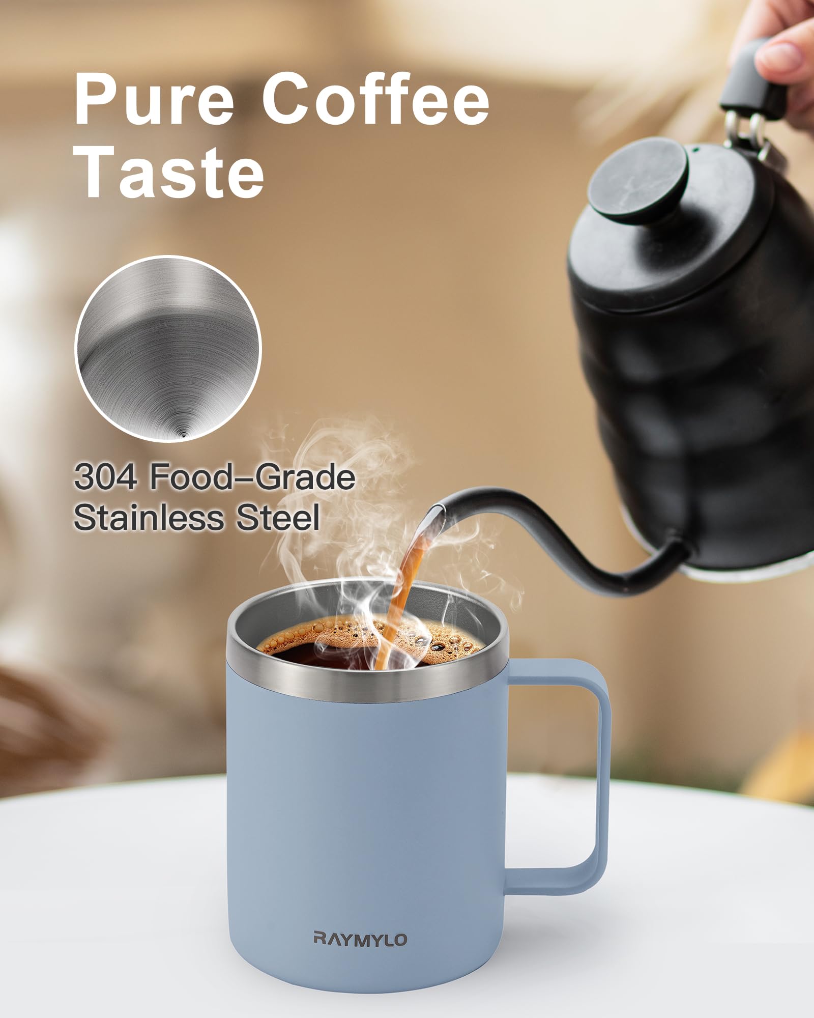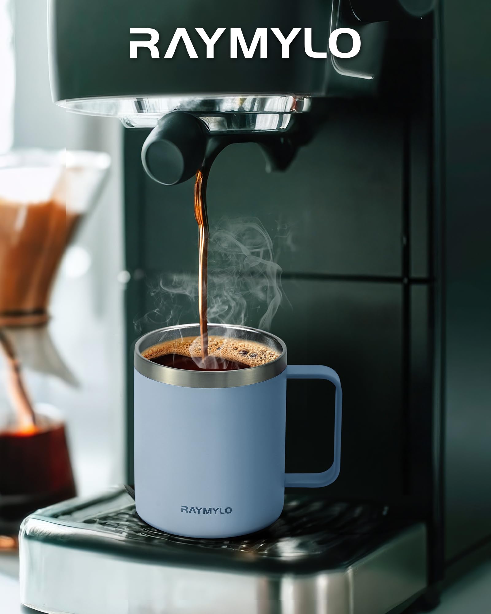 Double-Wall Vacuum Insulation: RAYMYLO Coffee Mug keep your drinks icy-cold for 9 hours and cozy hot for 3 hours with advanced Double-wall design! Perfect for hot summer days or long work hours, this insulated coffee mug with handle ensures your drink stays refreshingly cold or deliciously hot when you need it most.