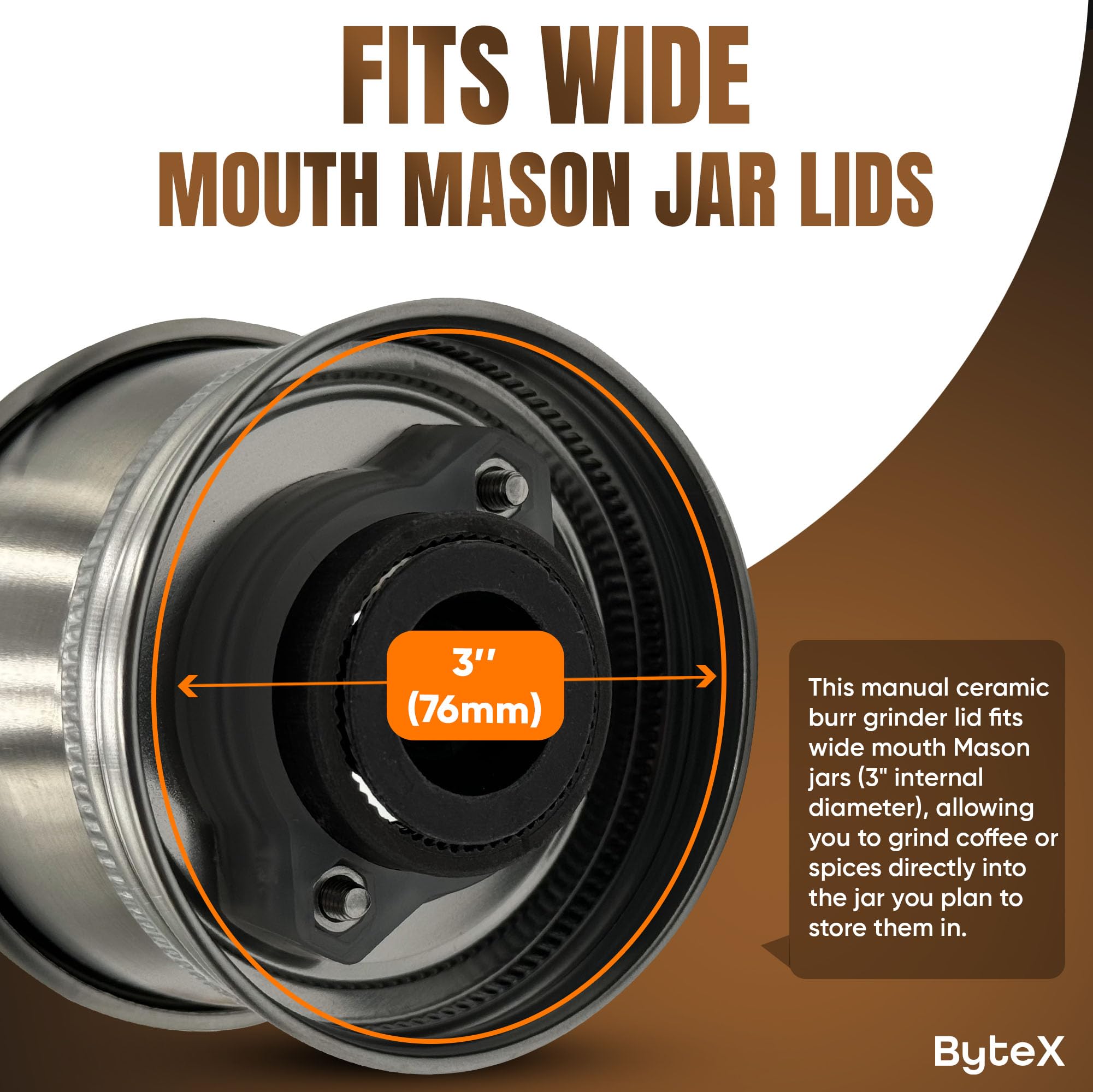 Fit for Mason Jars: This Coffee Grinder Lid is specifically designed to fit all Regular Mouth Mason Jars. Transform your Mason jar into a premium coffee grinder within seconds.