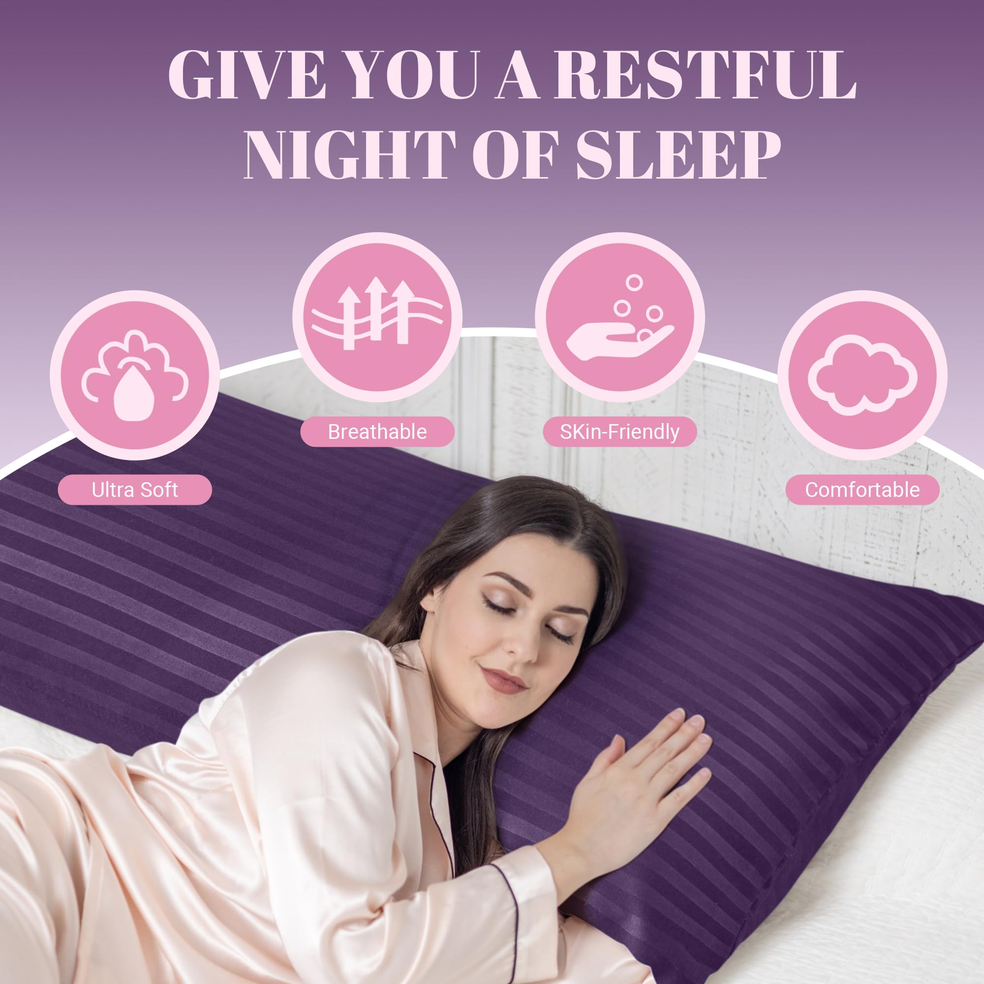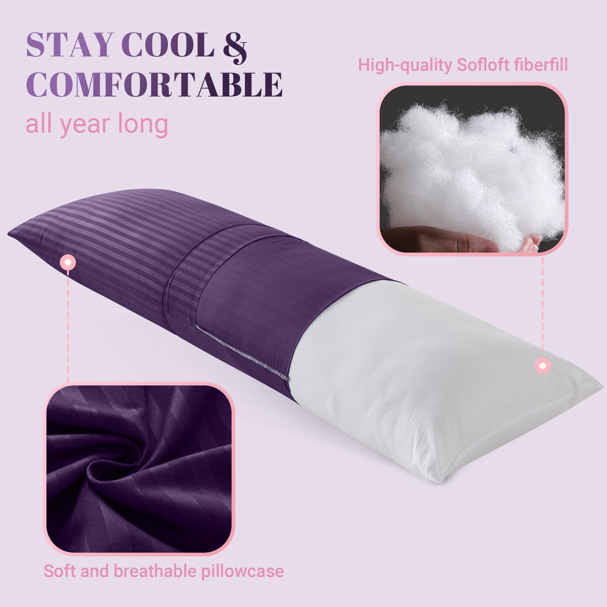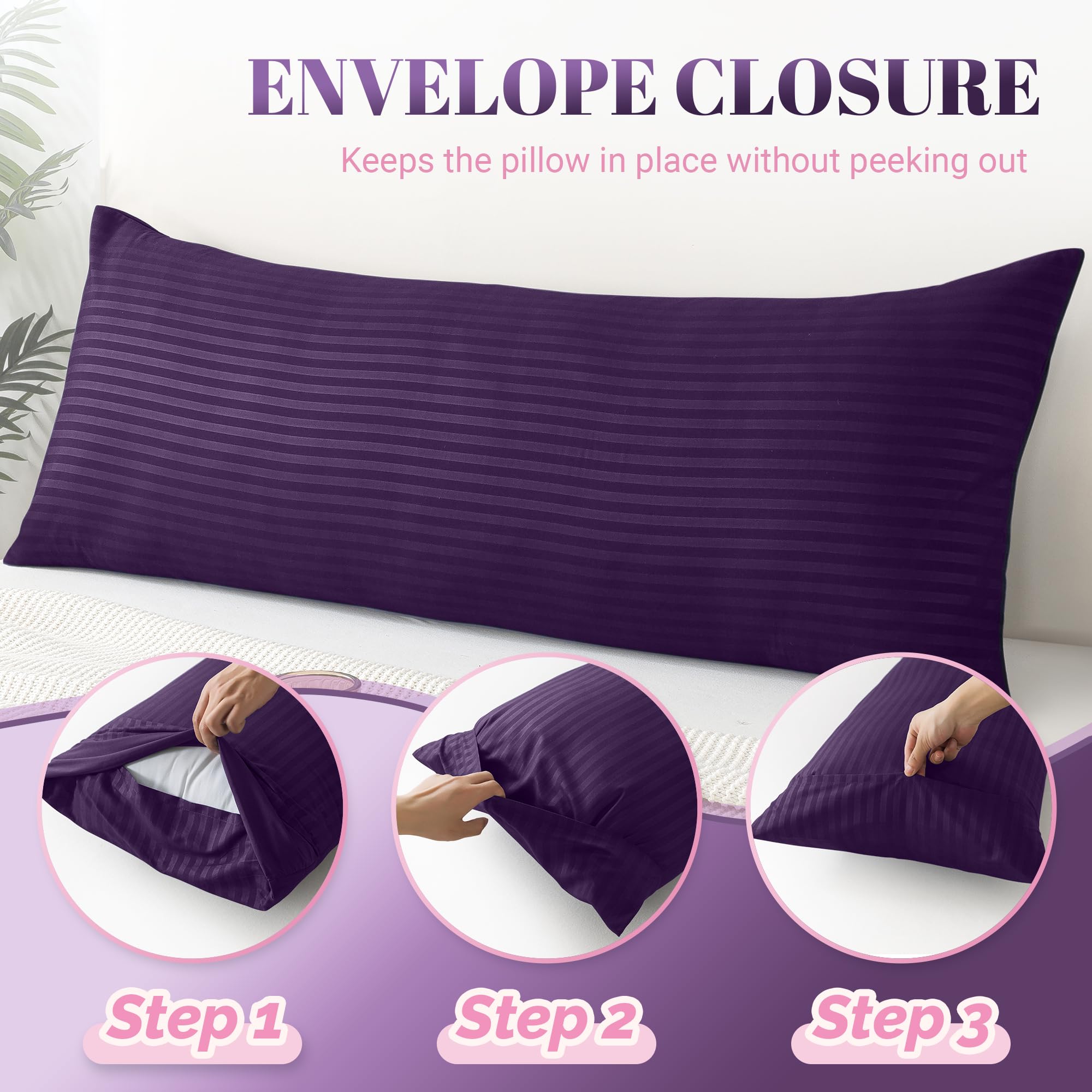 Breathable and Skin-friendly: Cosybay 20x54 purple body pillowcase is made of newly upgraded high-quality polyester fabric, with a unique stripe design that makes the pillow more fashionable and luxurious. It is soft, skin-friendly, and noiseless, allowing you to stay cool and comfortable throughout the night.
