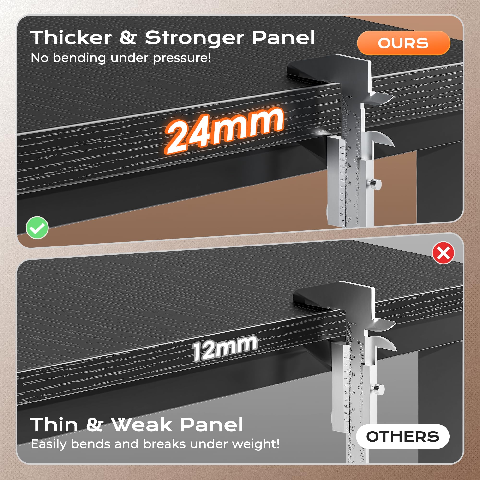 【Thicker Desktop & Heavy Workloads】From paperwork to creative projects, this 0.95 inches thick, high-density desktop l shaped office desk gives you the sturdy, scratch-resistant, waterproof surface and 220 lbs weight capacity you need to focus and get things done. Plenty of space for multiple monitors, notebooks, and that much-needed coffee