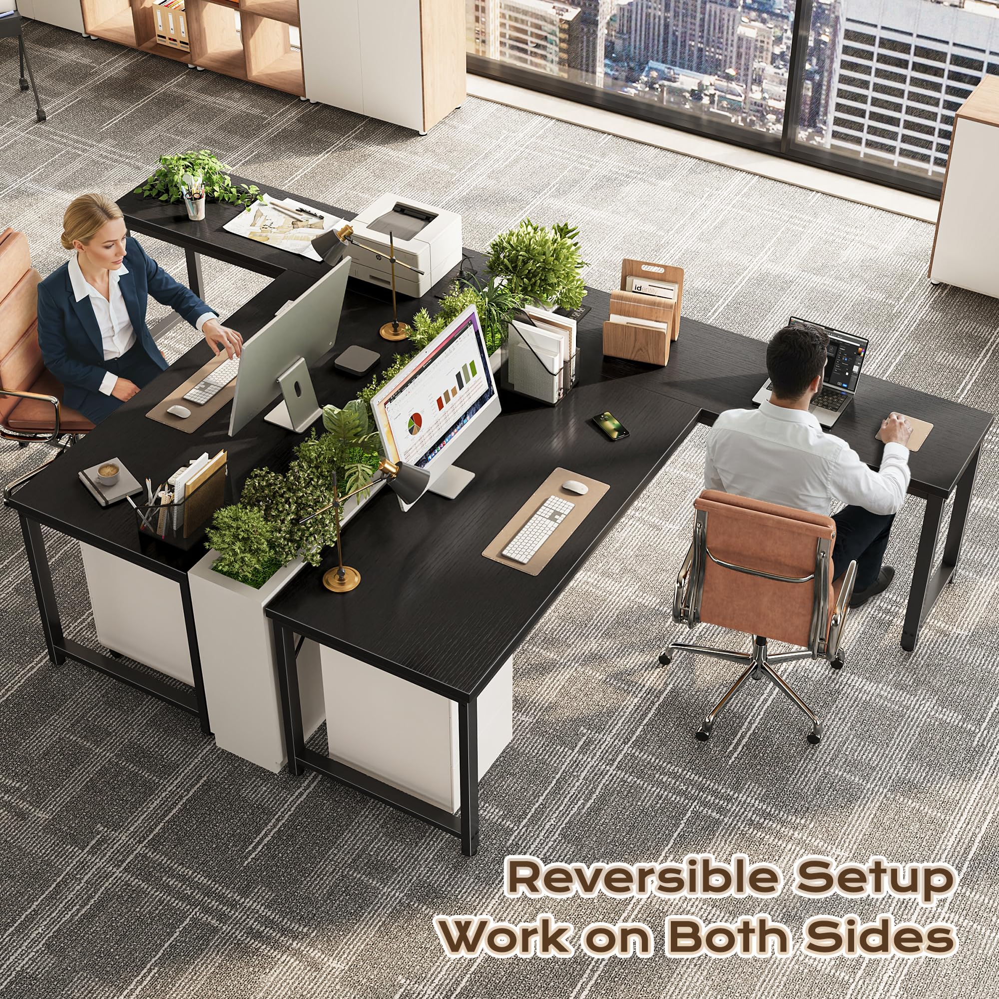 【Reversible L Shaped Computer Desk】Need more space? This reversible l desk can be tucked neatly into a corner or reversed to fit your setup with large legroom. Got a work buddy? Combine 2 pc desks for a seamless 2-person workstation. Plus, the L-shape gives your elbows proper support and extra room for monitors, notebooks, and, of course, coffee