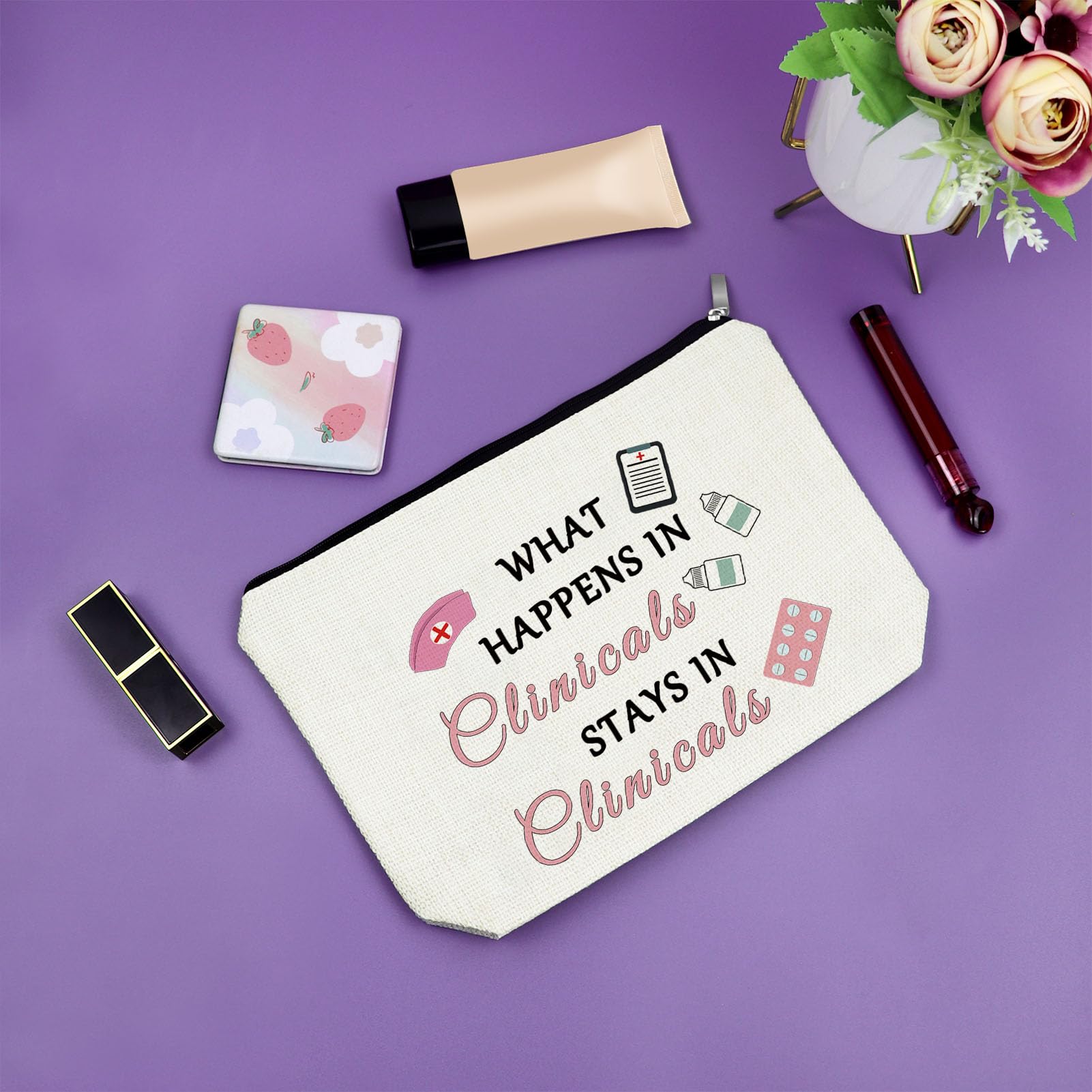 Nursing Clinical Instructor Gifts from Student:Nurse instructor appreciation gift nurse preceptor gift nurse teacher gift behind every good nurse is a great instructor makeup pouch - printed funny "What Happens in Clinicals Stays in Clinicals". The nursing profession is great, thank you for all your efforts.