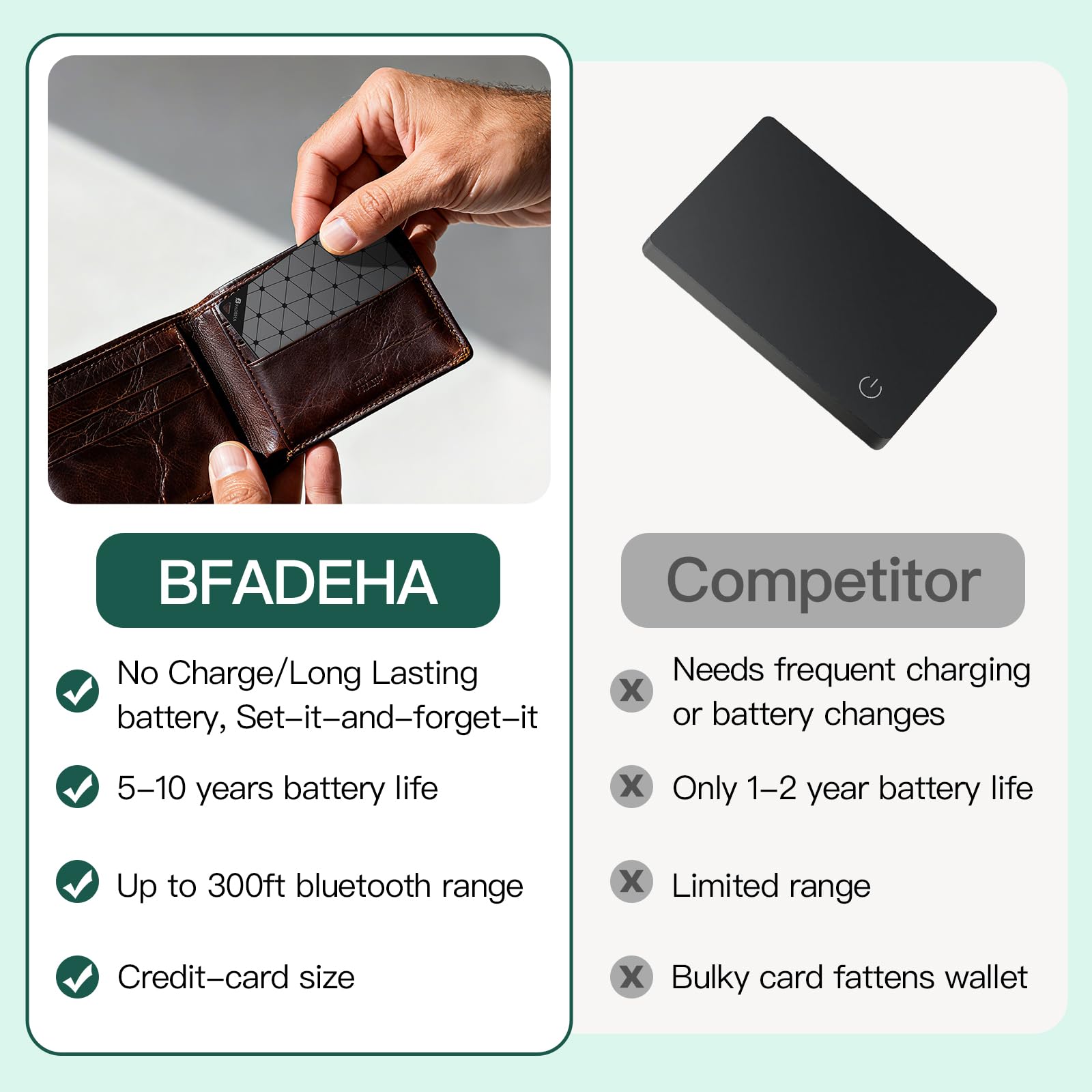 Seamless Apple Find My Integration (iOS Only) - Quick one-tap pairing process integrates directly with your iPhone's Find My app for instant tracking. Easily locate your wallet, bag, or valuables in real-time with BFADEHA Tracking Card or play a sound with our Bluetooth tracker — no extra apps needed!