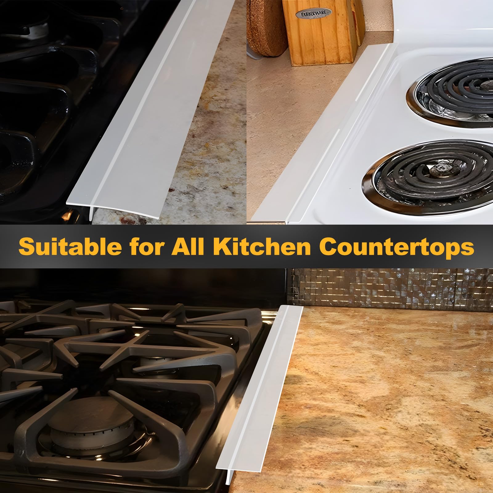 【Easy to Cut】:It has soft and flexible silicone conforms to the stove and counter surface perfectly, even they are uneven. And the stove gap covers can easily cut to fit non-standard size, for the shorter place. Please measure the size of your counter gap before purchasing