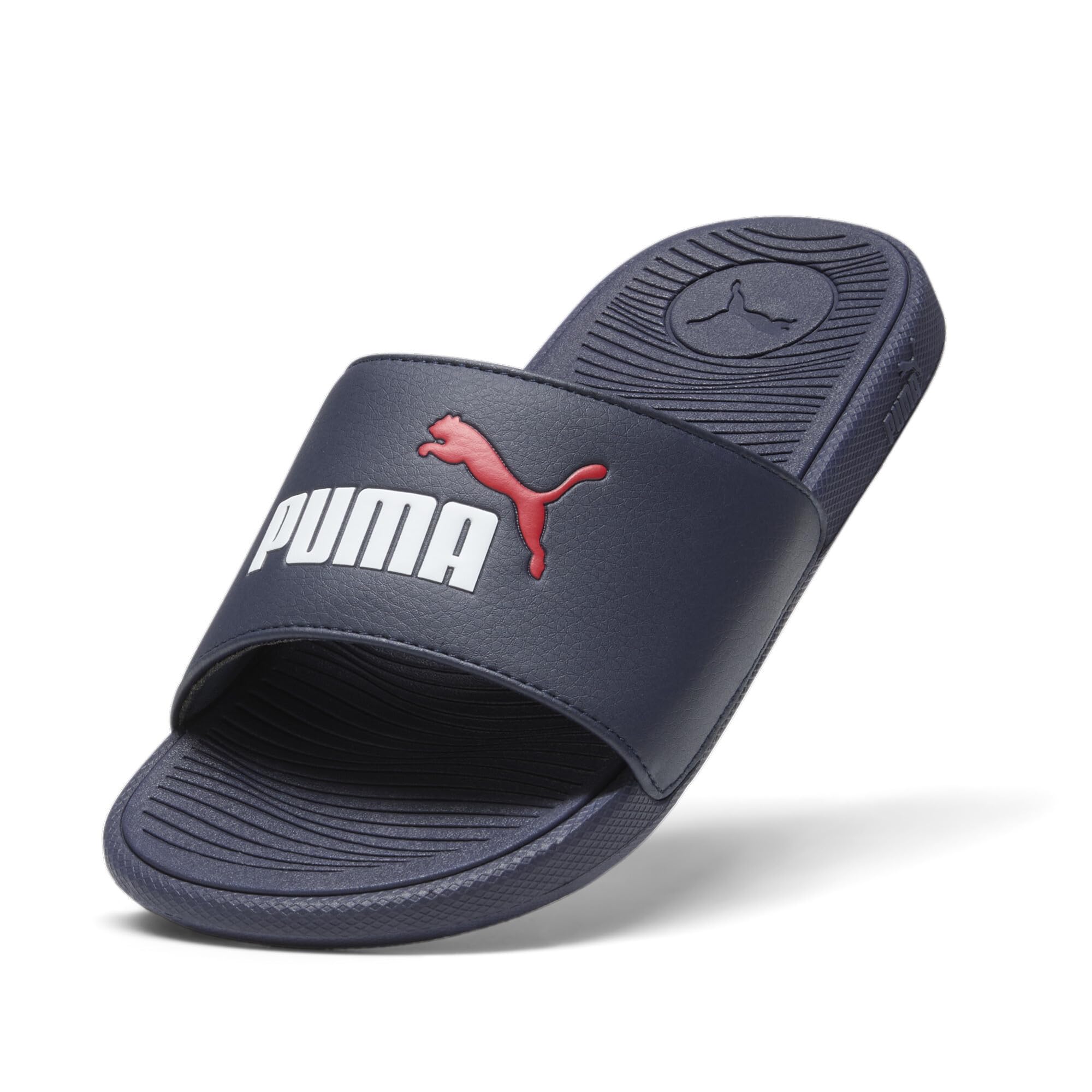 Description Slide on and go. This update to the classic PUMA slide has been refreshed with a new footbed design and even more comfortable IMEVA outsole. The synthetic leather strap with padding pays homage to the iconic PUMA no. 1 logo. This update to the classic PUMA slide has been refreshed to give an even better fit without loosing the sporty vibe.