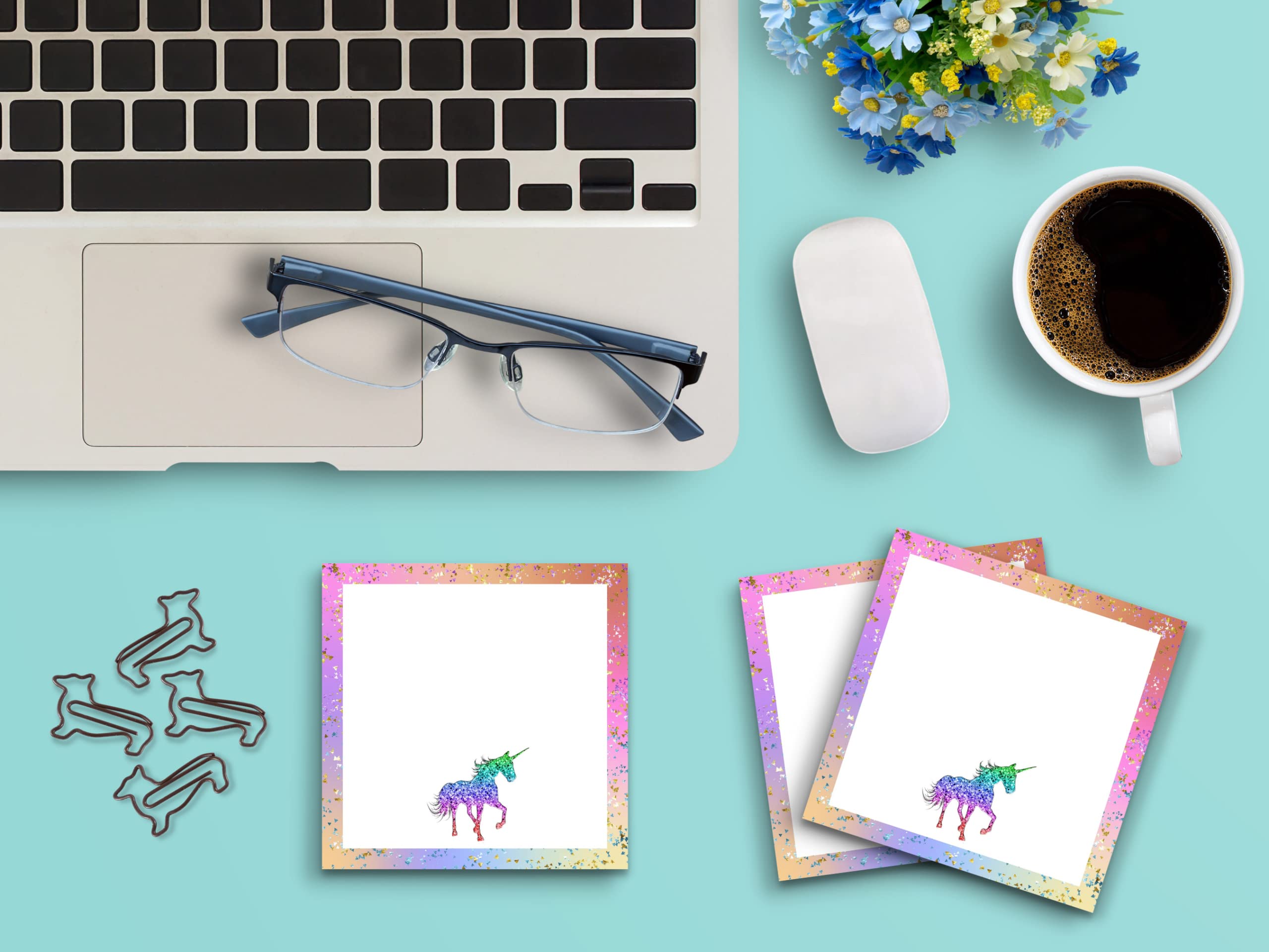Butler in the Home Sticky Notes 12 Pack 3"x3" 50 Sheet Count Per Pad, Glitter Border Rainbow Unicorn, Cute Funny Memo Note Pads Stationery Journal Planner Paper