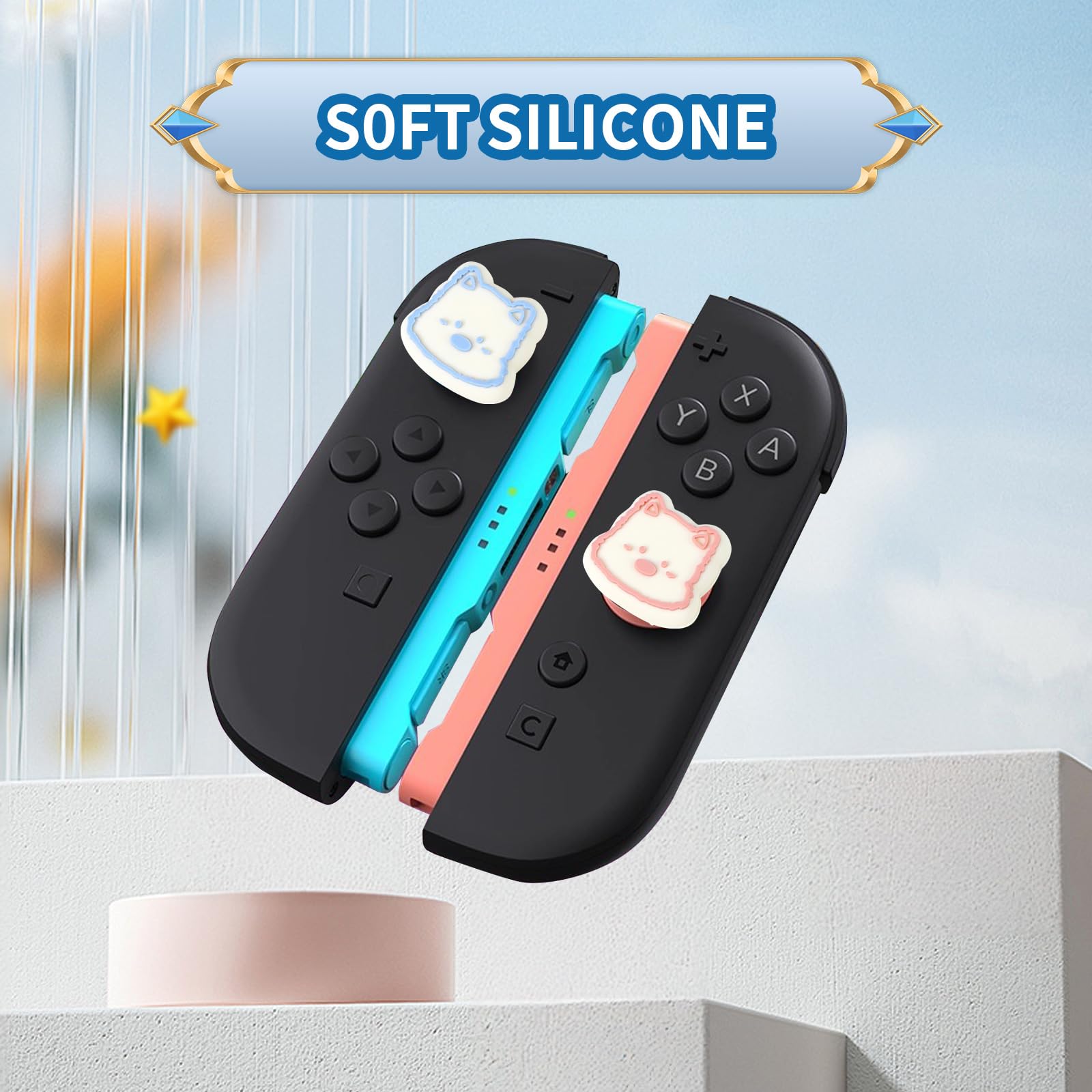 đăSoft and Comfortable TouchăSwitch 2 thumb grips are made of odorless silicone material, which can protect the analog sticks from scratches and dirt, and it is very comfortable to touch!