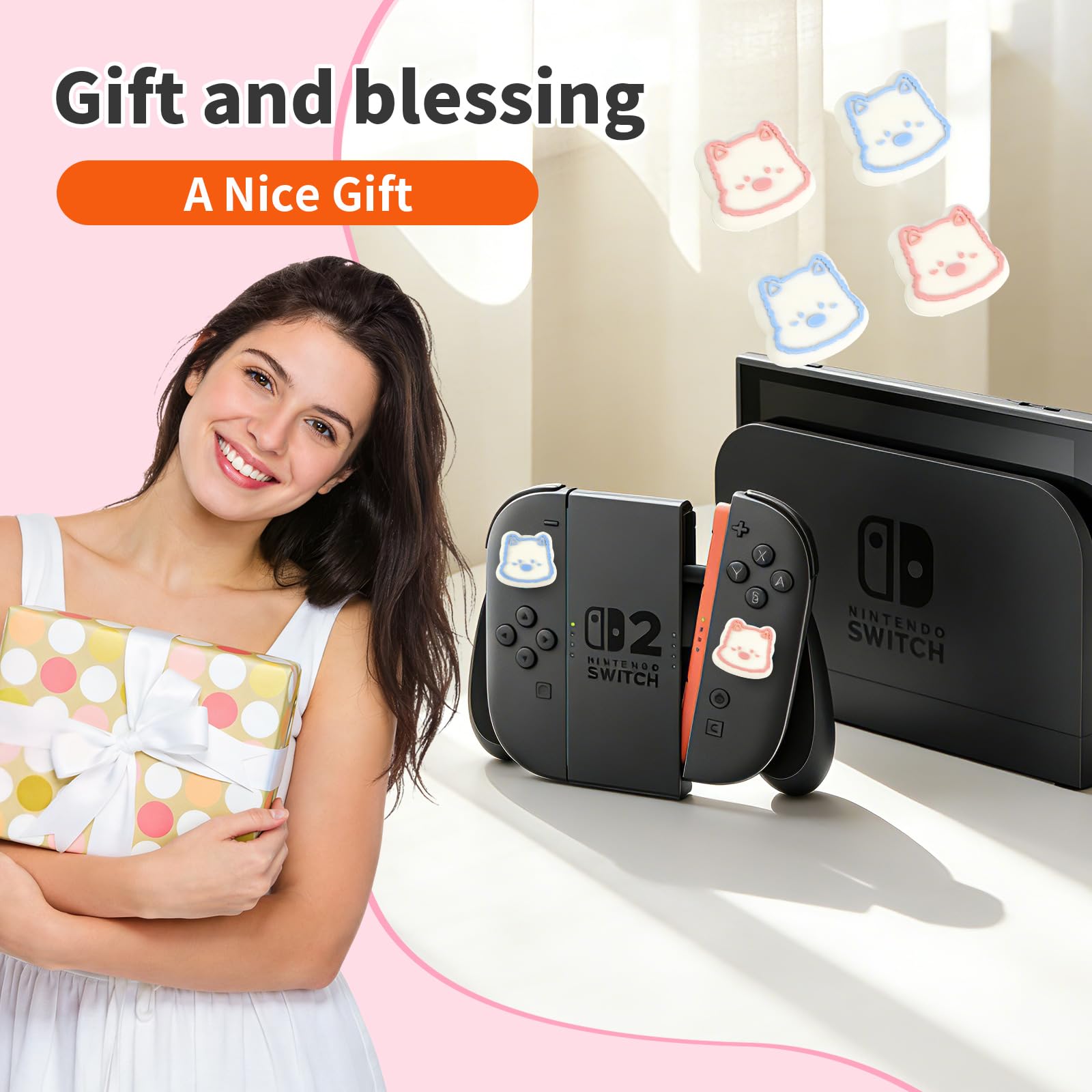 đăCute Lovely DesignďźEye-catching DecorationăYou will get 4 pcs cute Joycon thumb grips. 2 different styles, adds flavour and vitality into your game, It is lightweight and thin, make your switch 2 look more attractive, not bulky.