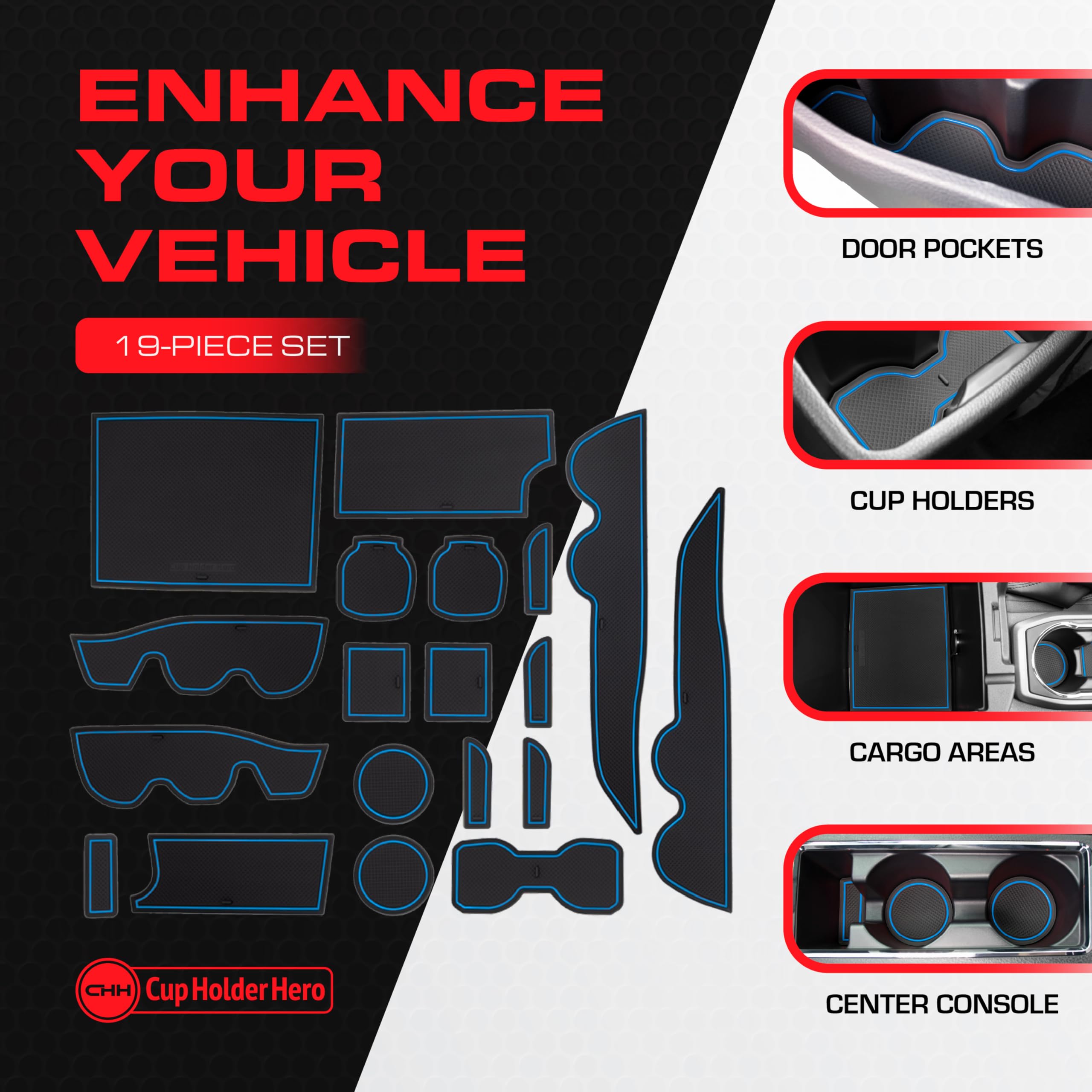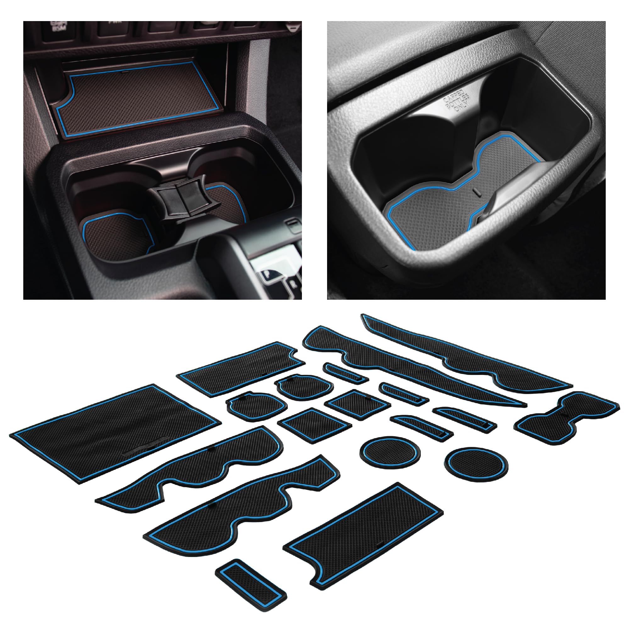 Convenient Handle & Raised Edges. Easily place and remove our cup holder insert and other liners. Simply pinch the handle and lift. The double raised edges around every liner also keep dust and debris contained, making for easy cleanup and disposal.