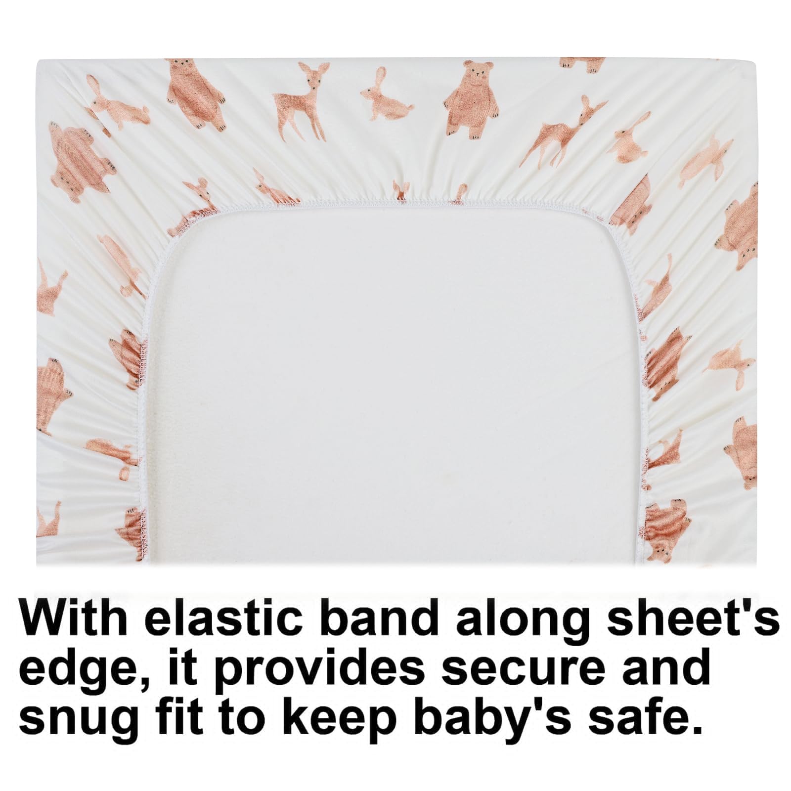 Cute Design: Our 3 pack bassinet sheets set, one printed with rainbow leave and cloud, one printed with elephant tiger lion and giraffe, and another one printed with brown deer bear and rabbit, our bassinet sheets match any style baby boy's and girl's room decoration.