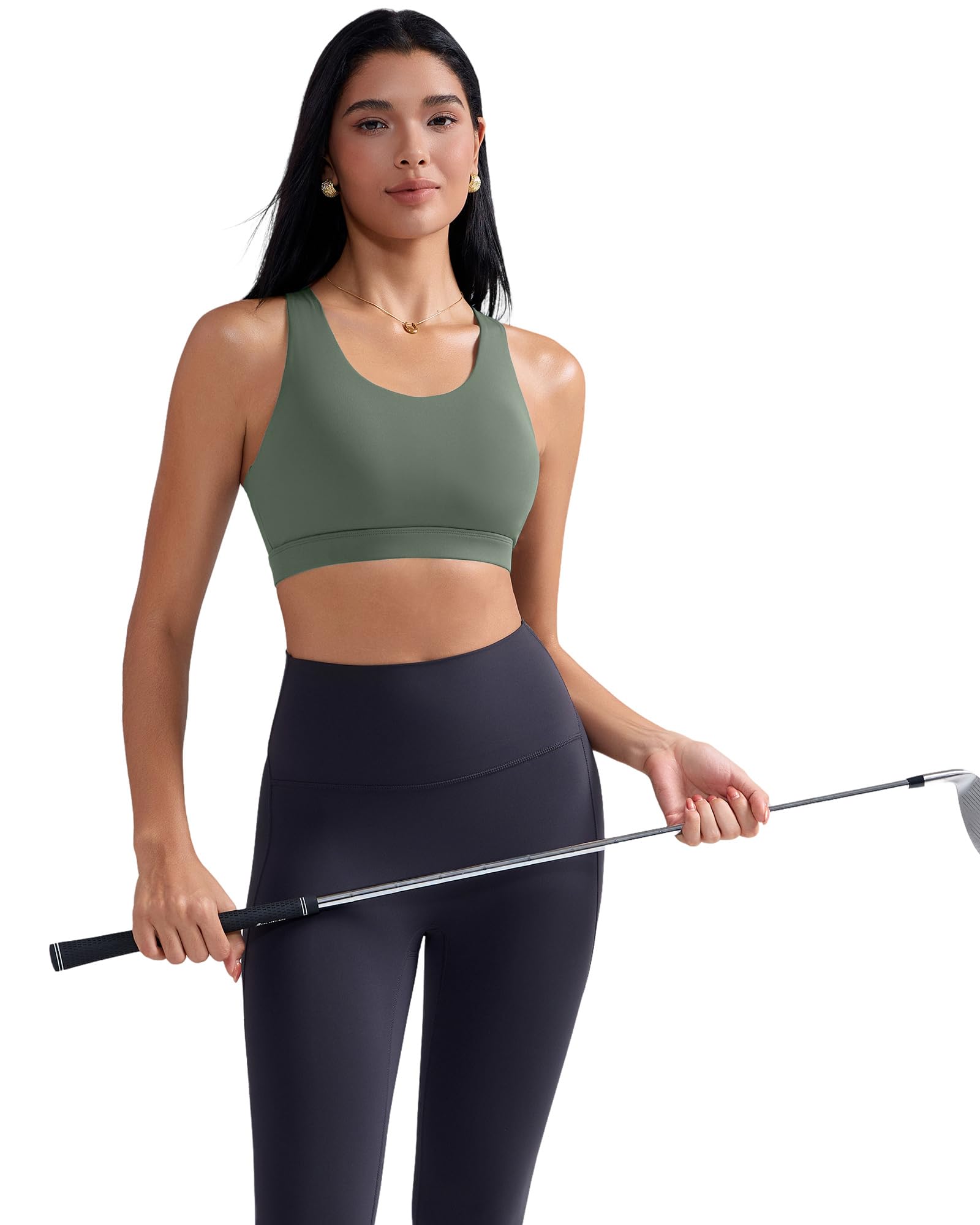 UNIQUE DESIGN:Criss Criss-cross back detailing gives the V-neck Bra its signature style. But it doesn't just look good, it's hard working. Heat transfer tech, a lined shelf bra, and the sports bra for women wrapped in durably soft performance stretch fabric keep you comfy and supported.The cotton-like meterial, soft and comfortable to wear.Crisscross back straps let you twist with ease, Sexy Crossback design offers a extra back support, fashionable and stylish, Stretch Fit Sports Yoga Gym Bra.