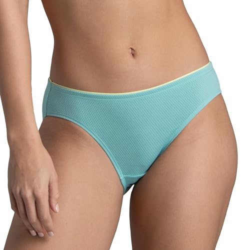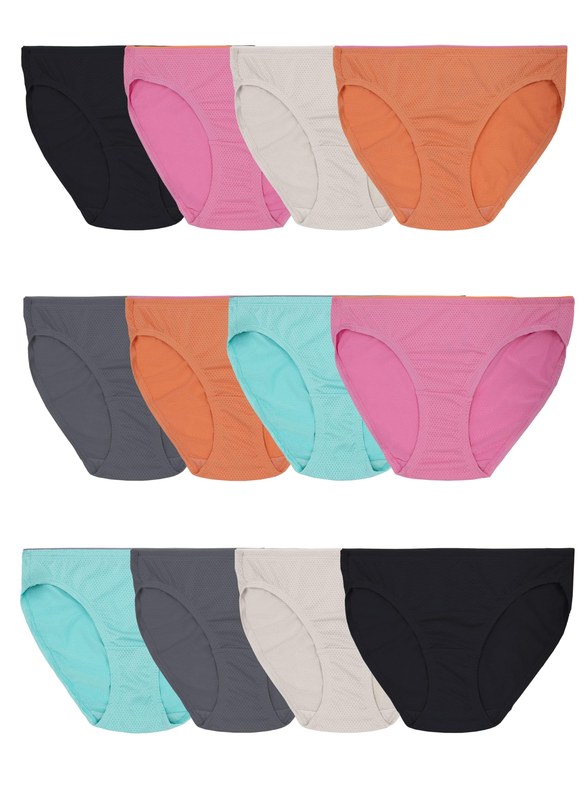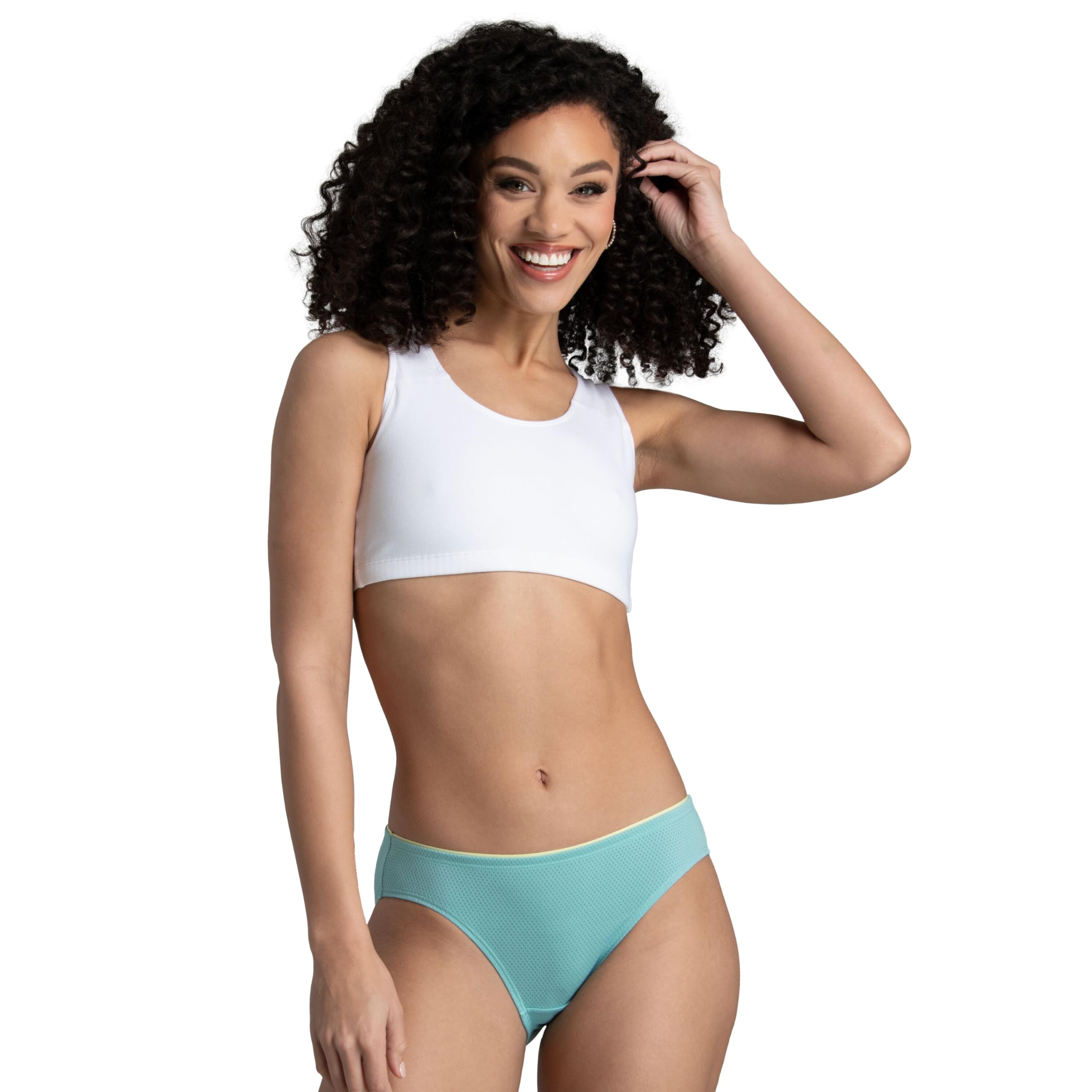 Description Fruit of the Loom Breathable Cotton-Mesh hipsters are just what you need to help you stay cool and fresh all day long. These panties are made with breathable, cotton-mesh fabric that not only supports the flow of air but wicks away moisture to keep you dry. Not only will these panties keep you feeling your best all day long, they’re designed with comfort in mind. Soft leg bands and a comfort-covered waistband provide added comfort, and as always, our Fruit of the Loom panties are tag free and made with a 100% cotton liner for extra softness. The contemporary hipster silhouette sits slightly above the hips.