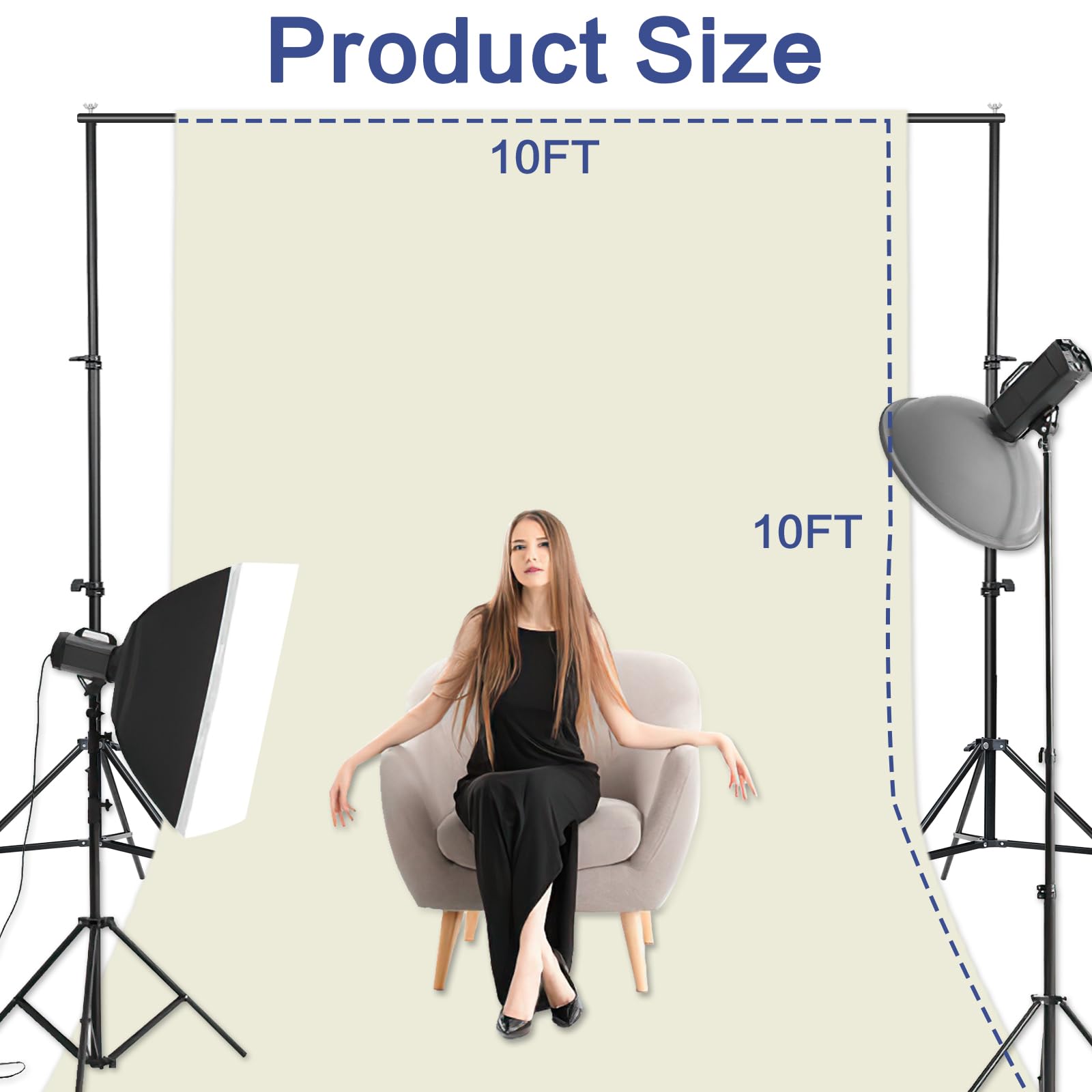 10ftx10ft Ivory photography backdrop background, 100% polyester, completely seamless, offer a good result for shooting. Only the backdrop, no include a stand.