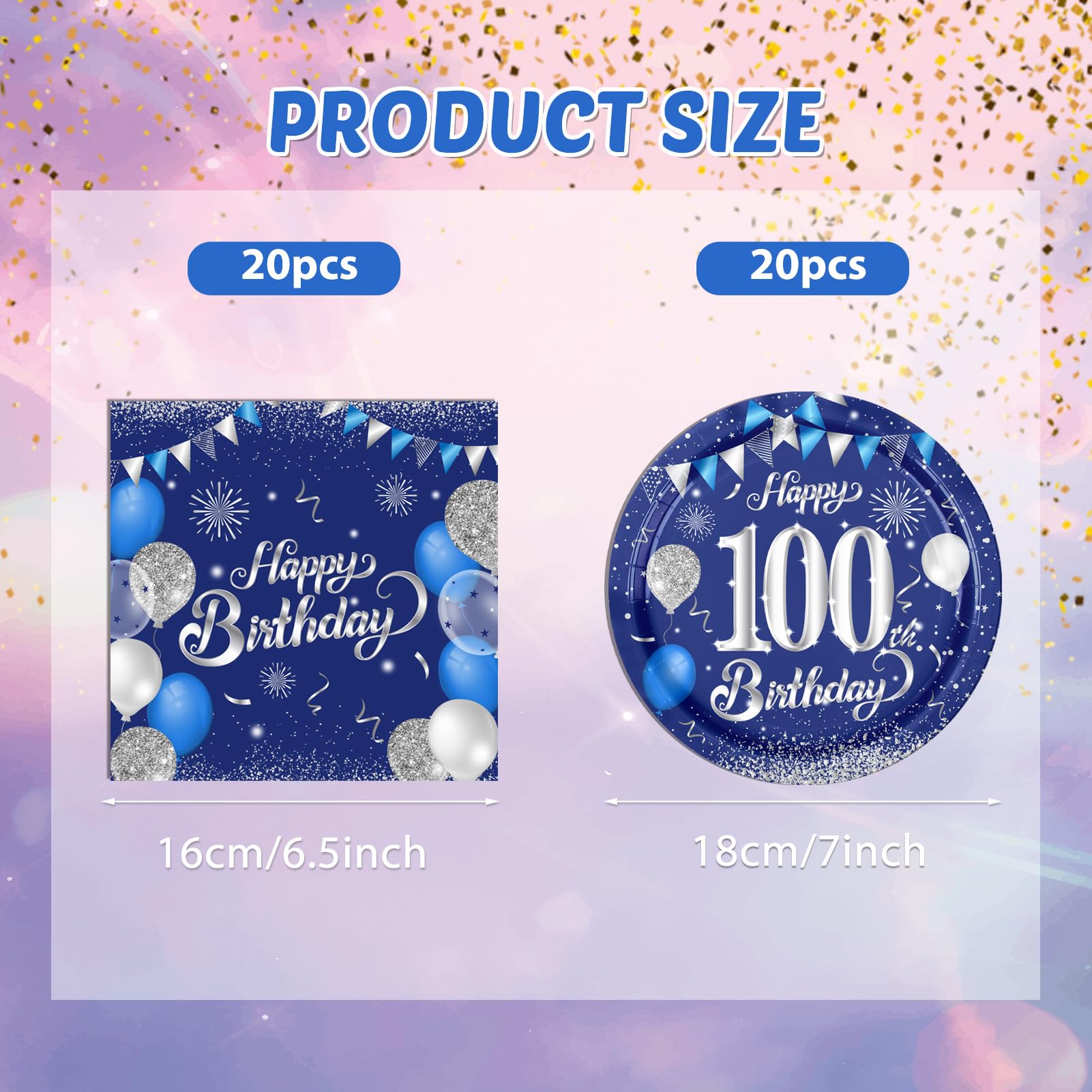 What Will You Get: Our 100th birthday party supplies include 20 pieces 100th birthday plates, 20 pieces 100th birthday napkins, the quantity is sufficient, which is perfectly enough for you to hold a perfect birthday celebration!