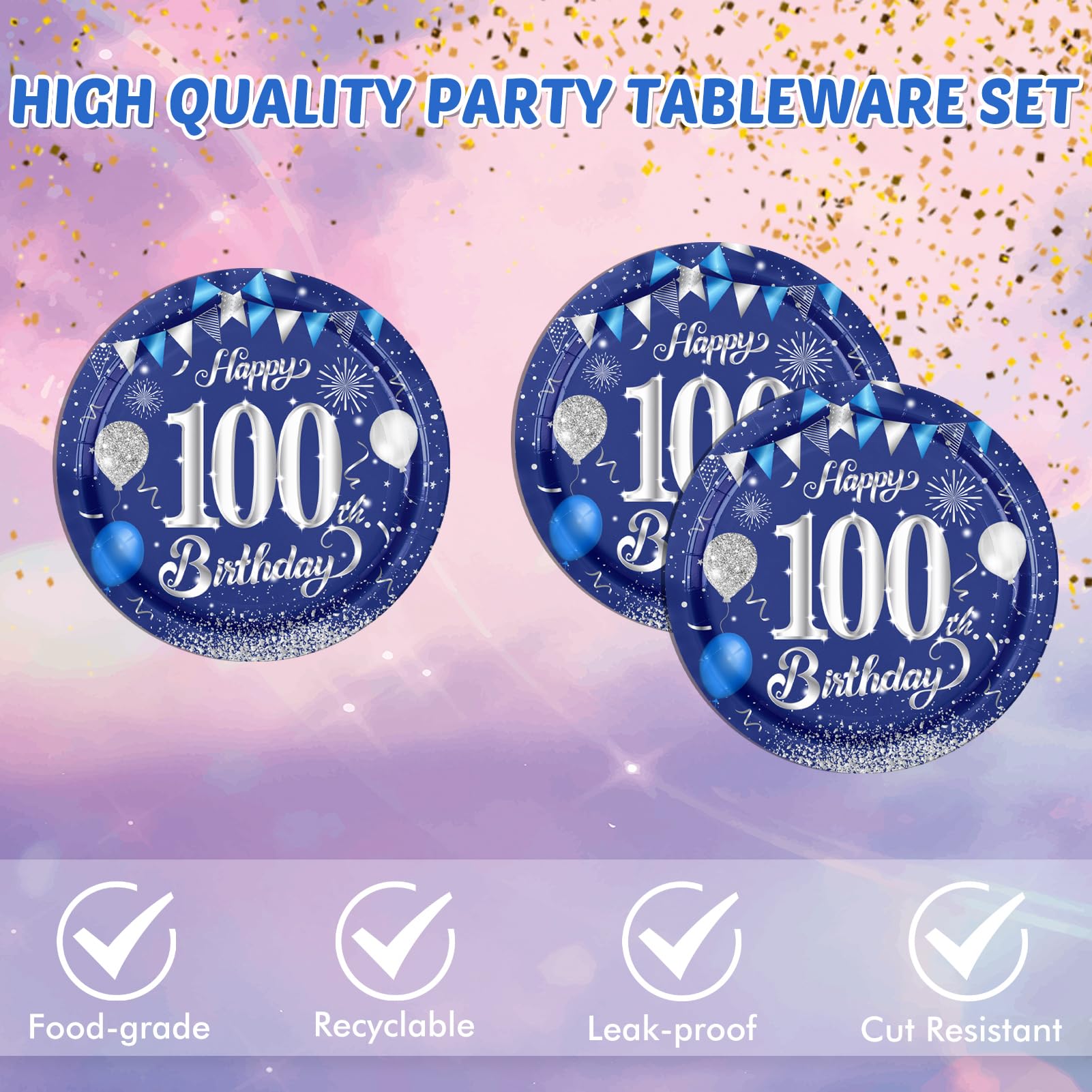 High Quality Material: 100th birthday plates and napkins are made of high quality material, non-toxic, odorless.100 year old birthday decorations uses advanced printing technology to ensure that the patterns and colors are beautifully printed and not easy to fade, so you don't have to worry about the paint getting on your food.