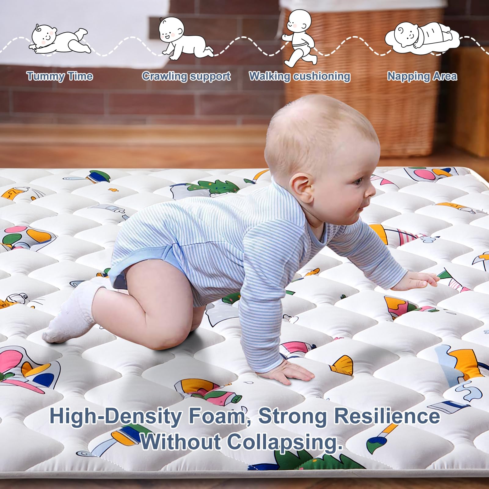 Easy to clean: No worries at all about mats stained with urine, milk, juice and other stains, our mats are machine washable and can be washed in a large washing machine and dried at low temperatures, which is very convenient, especially for busy parents.
