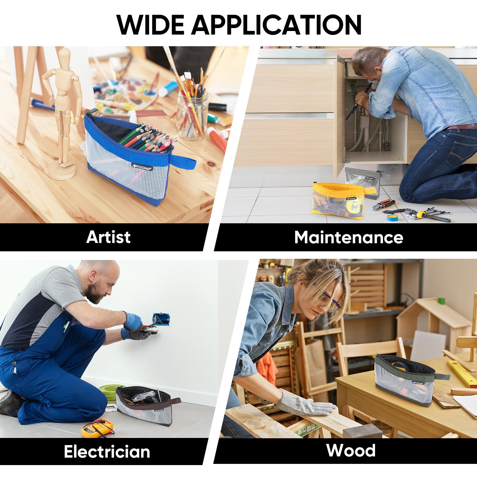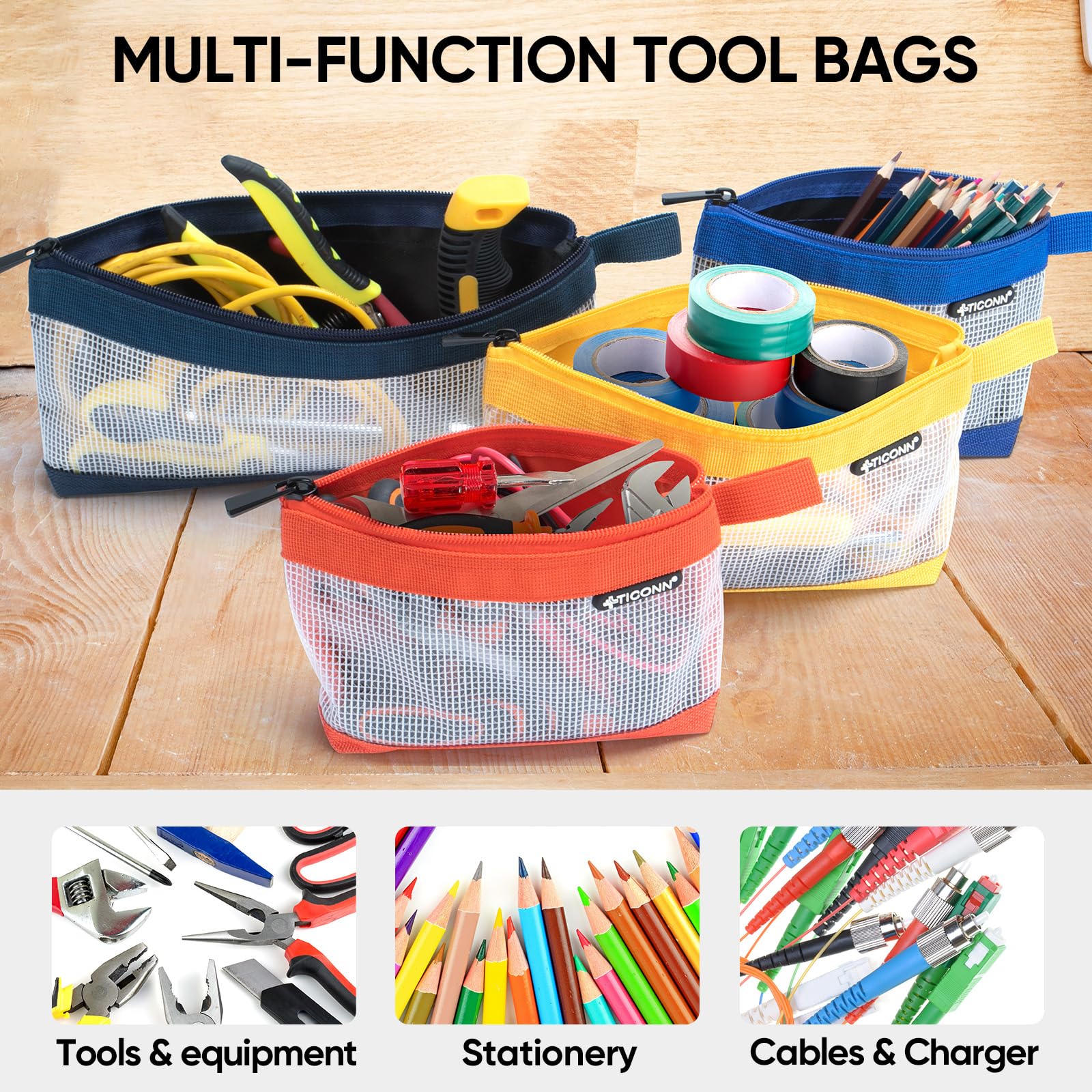 [VERSATILE STORAGE] These tool bags are available in a variety of colors and sizes, making it easy to organize your items and tools, such as screws, accessories, office supplies, and daily essentials. They can also serve as pencil bags, accessory holders, cosmetic pouches, stationery organizers, or office companions