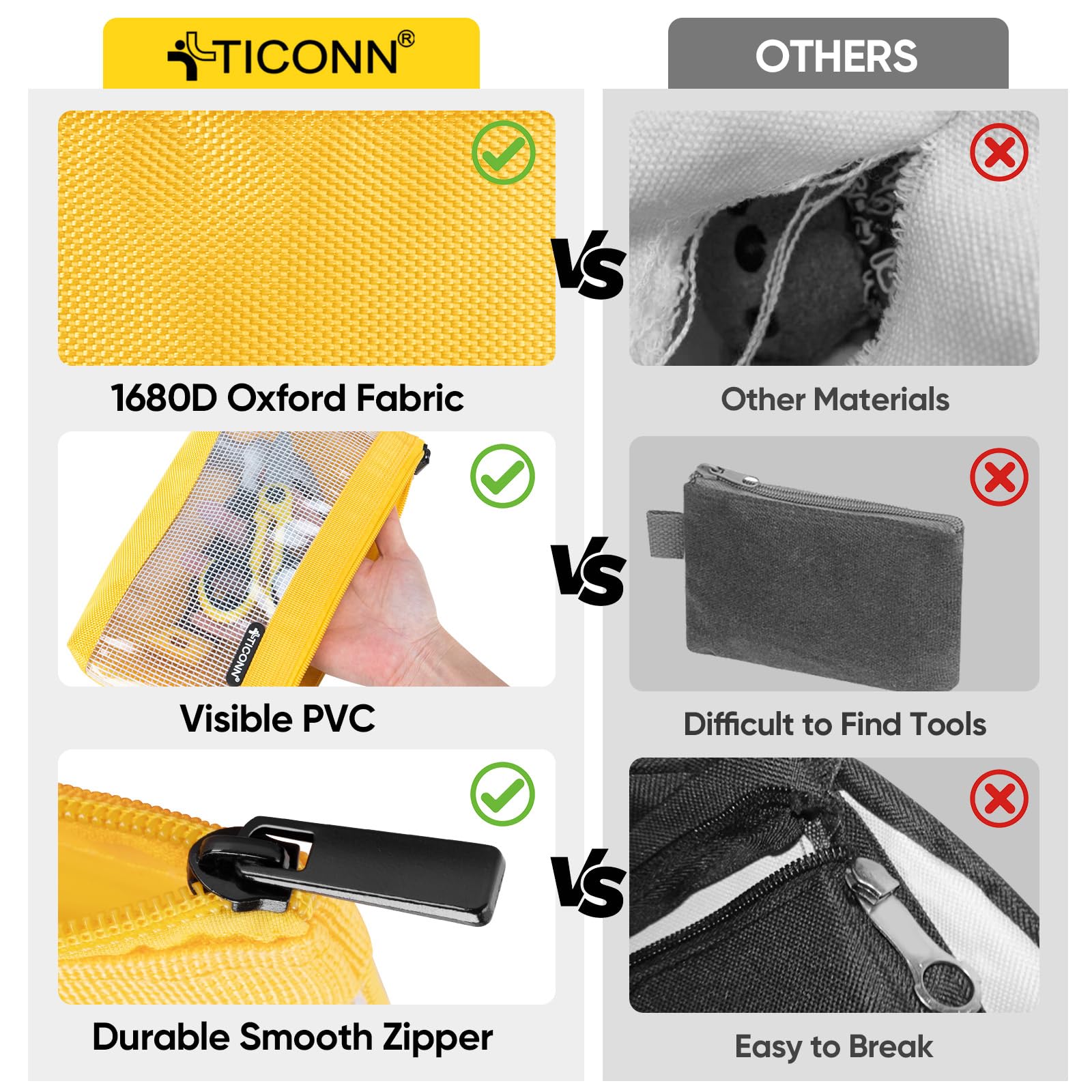 [CLEAR VISIBILITY] The front of the small tool bags is made of transparent PVC material, allowing easy visibility of tools. This design lets you quickly locate and access your tools when needed, saving you time compared to traditional tool bags