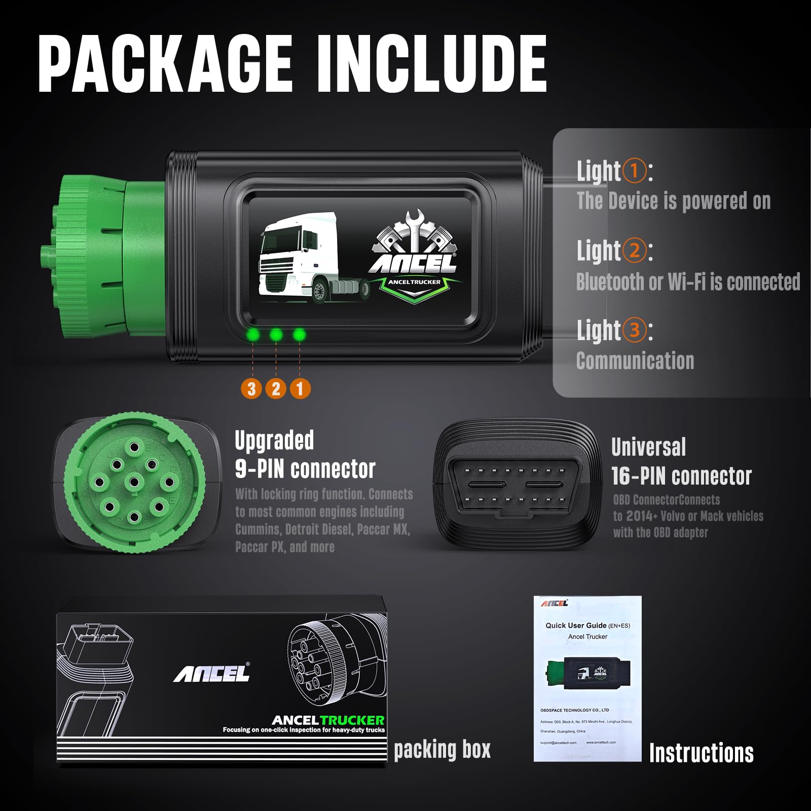【LIFETIME FREE UPDATES & RELIABLE SUPPORT】 Through the ANCEL Trucker App, enjoy lifetime free software updates—no subscriptions or hidden fees. Each update expands protocol and truck coverage, keeping your HD100 current for years ahead. Backed by professional tech support, a 30-day return window, and a 1-year warranty, you can buy with total confidence. Any questions, please e-m ail us at [email protected] with your order number and photos