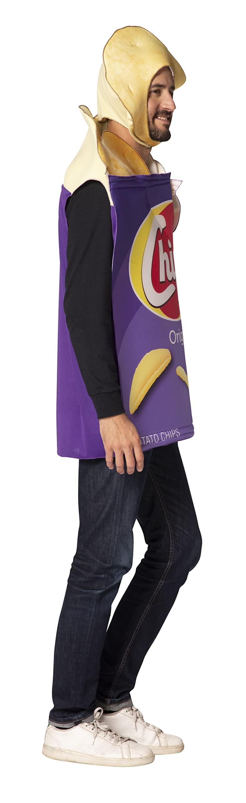CLASSIC CHIP: I’ll just have one, said NO ONE EVER when it comes to potato chips! The potato chip is mankind's favorite salty snack. It comes in all shapes, flavors and sizes BUT we'll go with the classic here! Arrive as the Potato Chips Bag Costume and be the irrestible snack of the night.