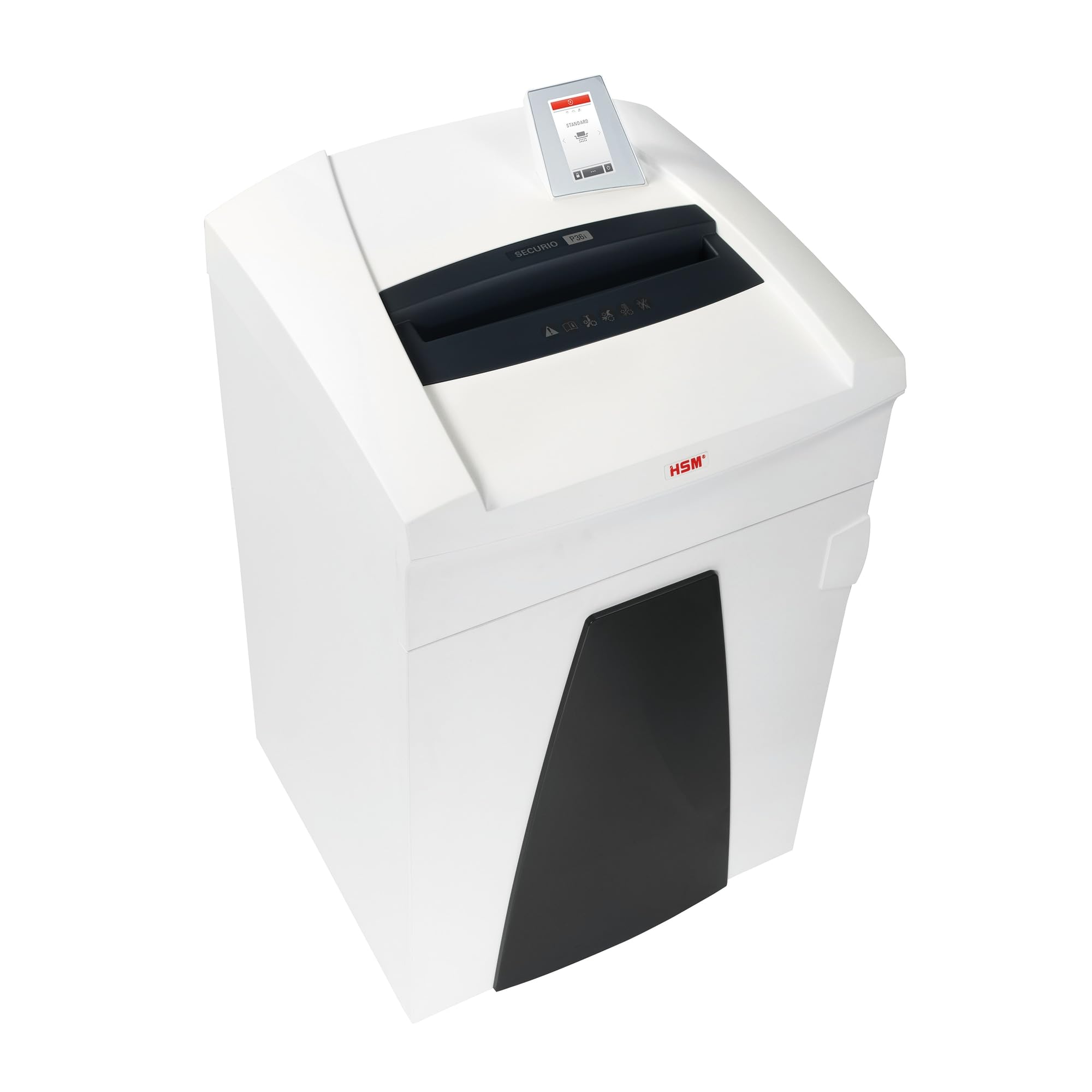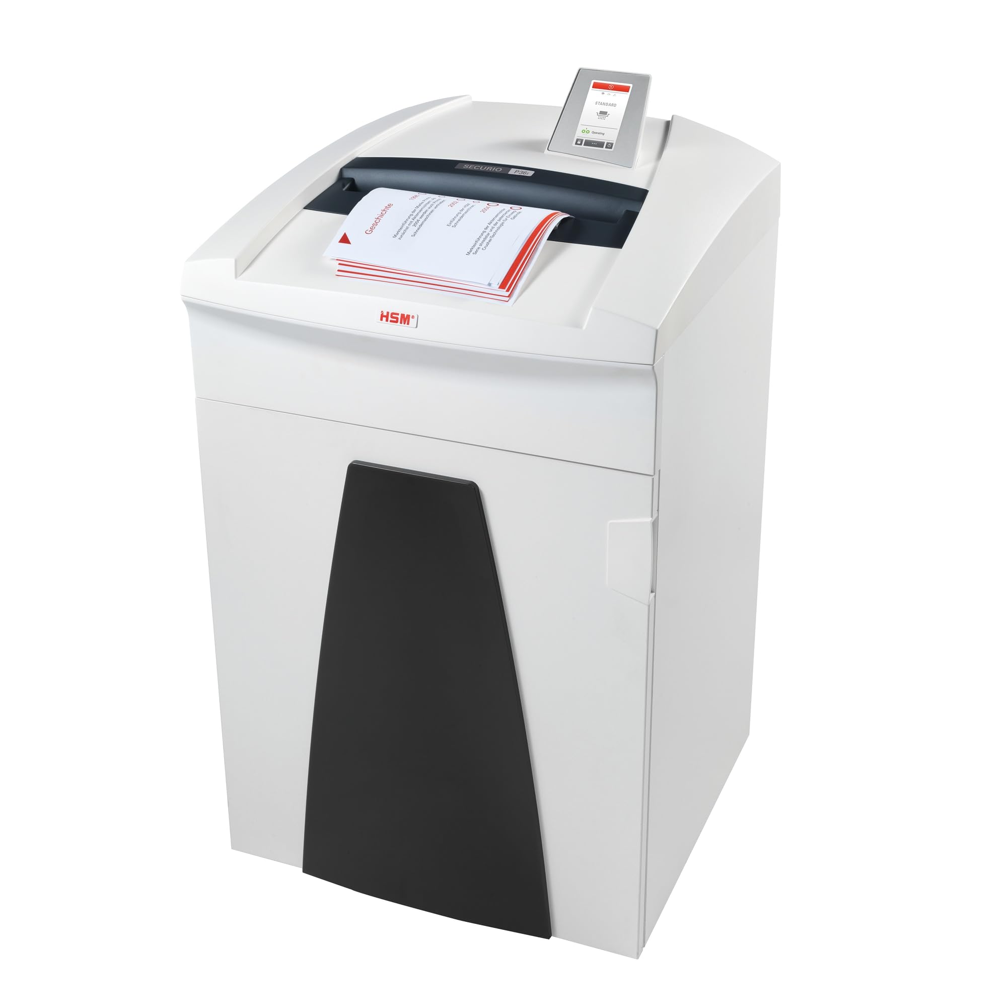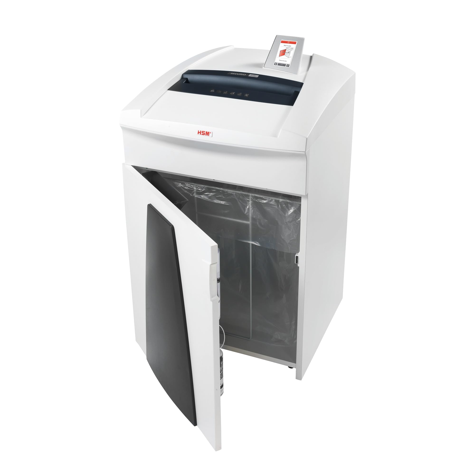 Meets DOD & NSA/CSS 02-01 & 04-02 mandatory security requirements. High quality materials and "Made in Germany" quality for safety and durability complete with a 3 year warranty. Cutting rollers made of hardened solid steel. Uses Energy Management Control System (EMCS) to deal with energy in asensible manner by reducing energy consumption up to 90%. Automatically switches to energy-saving mode in 2 minutes after last use;switches off entirely if not used for 4 hours; temporary mode for small shredding jobs; and permanent mode for large shredding jobs. Equipped with Anti-Jam technology to easily and quickly reverse out paper in the event the machine is overloaded. Operation via touch display with Intuitive operation and multi-language menu selection via the high resolution 4.3" touch display. Relevant information such as operating modes and status reports are displayed. Intelligent paper jam prevention due to the intelligent paper jam prevention feature, the system recognises automatically and quickly whether too much paper has been fed in. The machine goes into reverse or increases the power temporarily and pulls the paper in. Consumable material, machine and contact details can be called up. Removable waste container. Integrated auto oiler. Powerful motor allows for continuous operation. Includes a removable bag frame. Uses a 58 gallon capacity shred bag; Part #HSM2117.