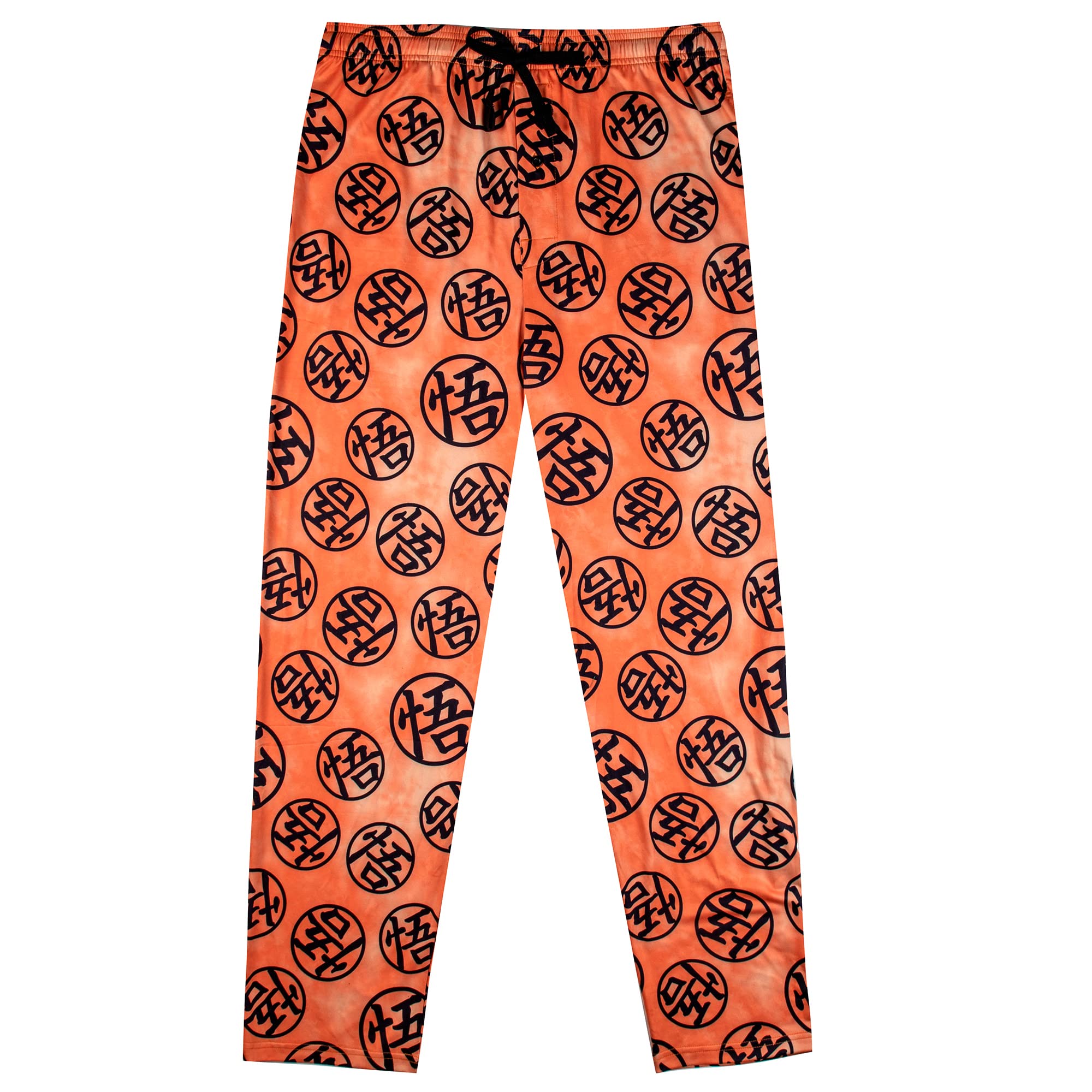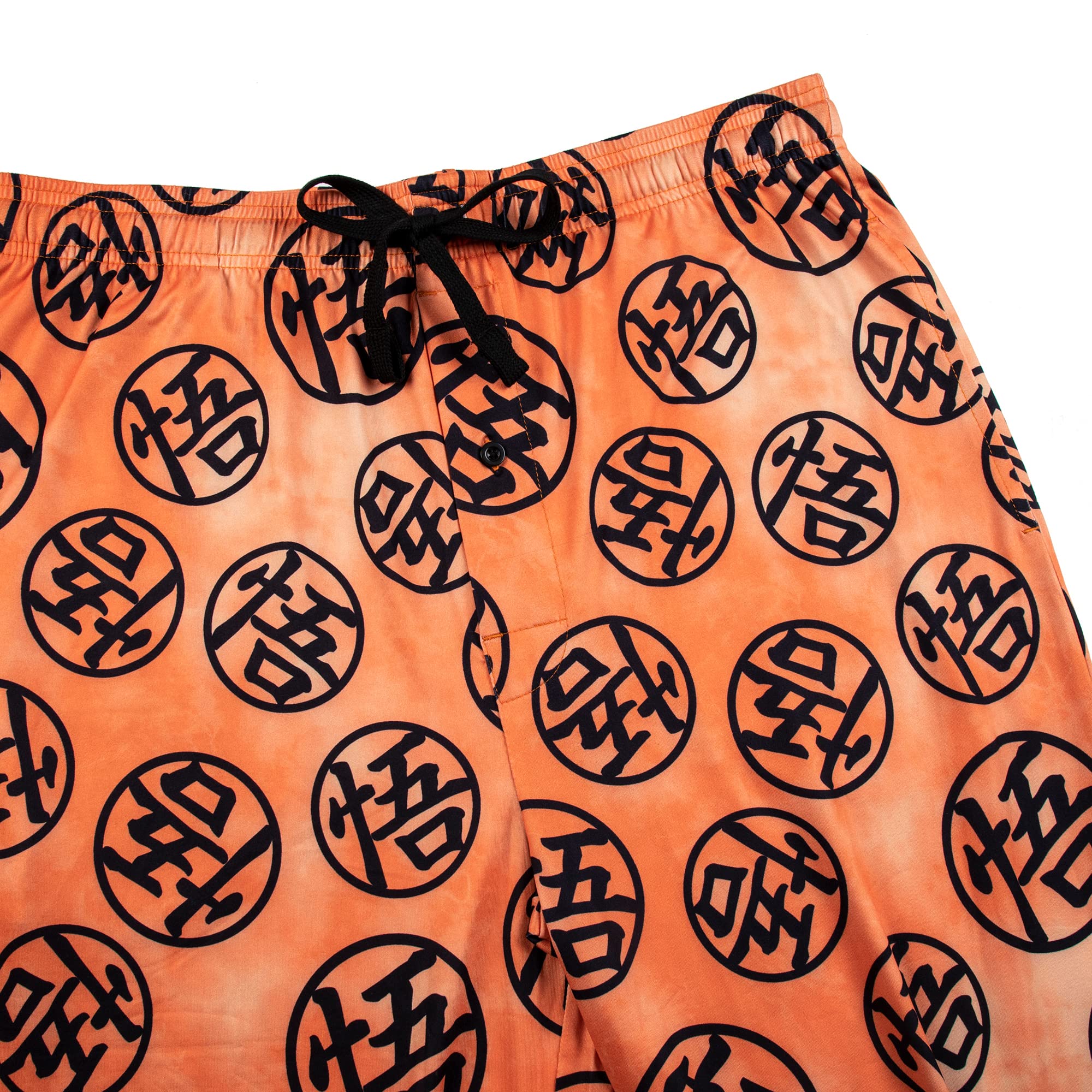 Description Go super saiyan with this Dragon Ball z sleep set. The set includes a black graphic tee with an image of Goku in front of an orange background and a pair of orange stretch plants with all over print of Goku's kanji symbol. The pants come with a pair of pockets and an elastic waistband with a drawstring. Celebrate your favorite anime characters with this comfy and cozy sleep set.