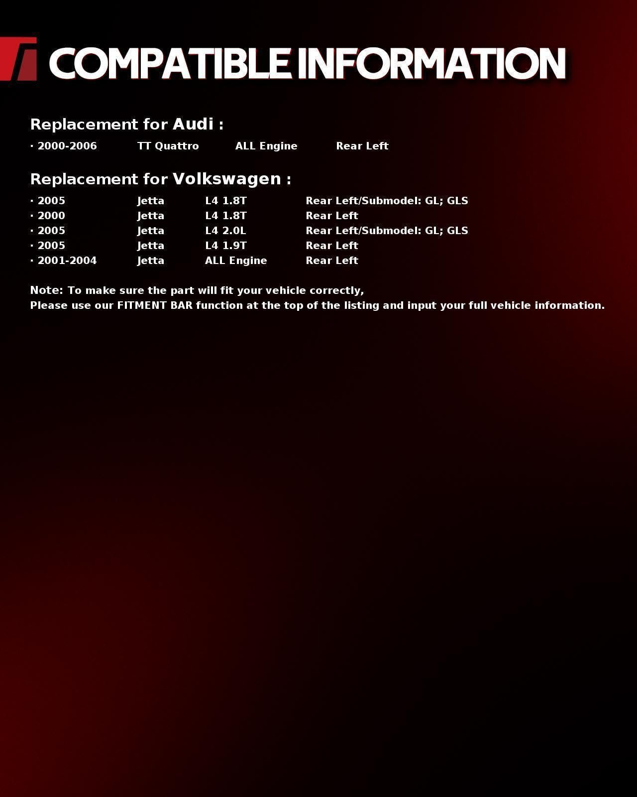 【Product Adaptation】:Torchbeam Rear Caliper for Volkswagen 2001-2004 Jetta, Audi 2000-2006 TT Quattro, Volkswagen 2005 Jetta 1.9T, Volkswagen 2005 Jetta 2.0L, Volkswagen 2000 2005 Jetta 1.8T