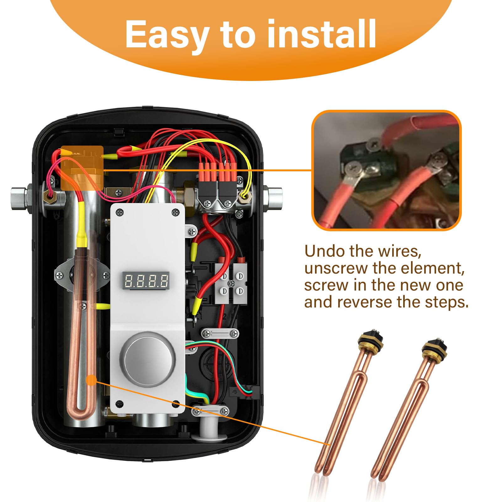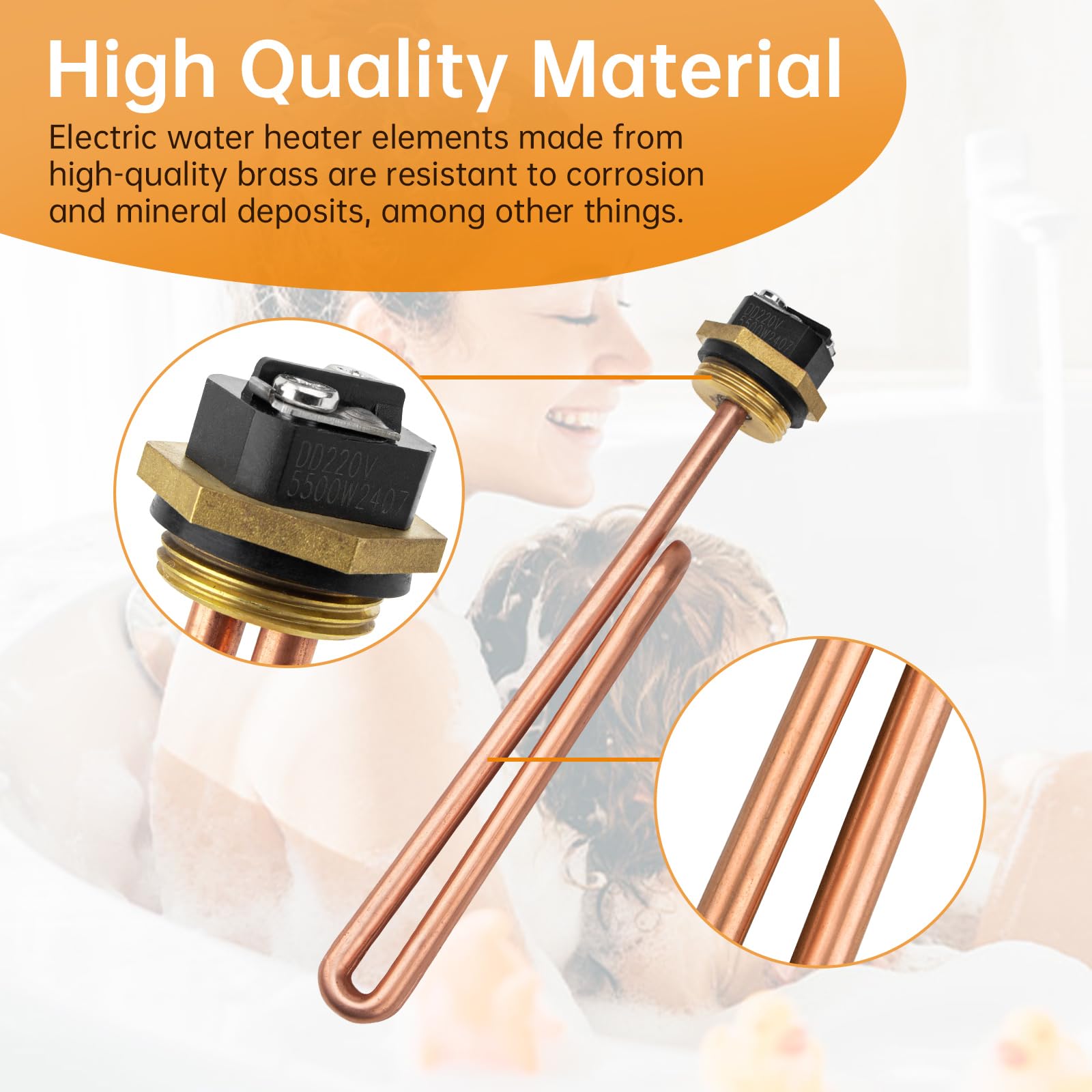 【High Quality Material】Our tankless water heater element is made from high quality brass, which has better thermal conductivity, can withstand higher temperatures and is resistant to corrosion and mineral deposits.