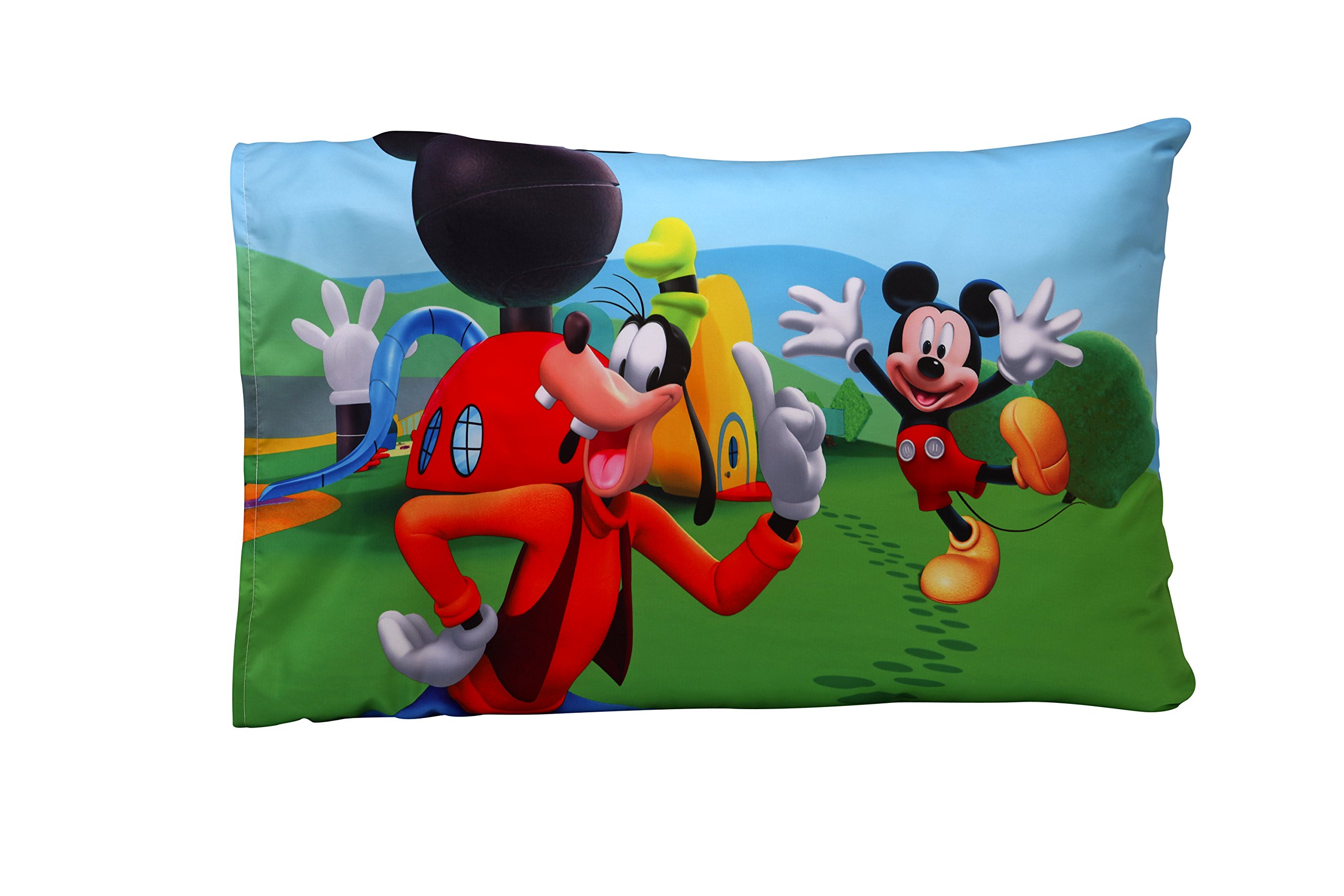 Complete a bedroom in super fun style with the colorful Disney Mickey Mouse Playground Pals Toddler Sheet Set. It has an adorable print that features four iconic characters in fun poses. It comes with a fitted sheet that fits standard size crib mattresses, and the pillowcase fits a standard pillows. Gathered corners allow for a snug fit and easy bedding changes. This Disney sheet set is an excellent choice for fans of the timeless cartoons. It coordinates with the Mickey Mouse toddler bedding collection (sold separately). With 100 percent polyester microfiber fabric, both pieces are comfortable and gentle on skin. This 2-piece Mickey Mouse sheet set is easy-care for effortless use.