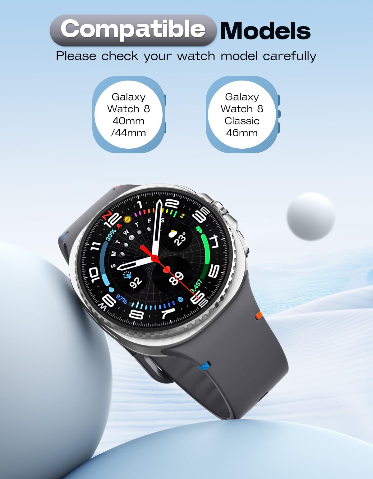Compatible Models: This soft silicone band is only compatible with Samsung Galaxy Watch 8 band 40mm/44mm and Galaxy Watch 8 Classic band 46mm. Note: Smartwatches are not included.