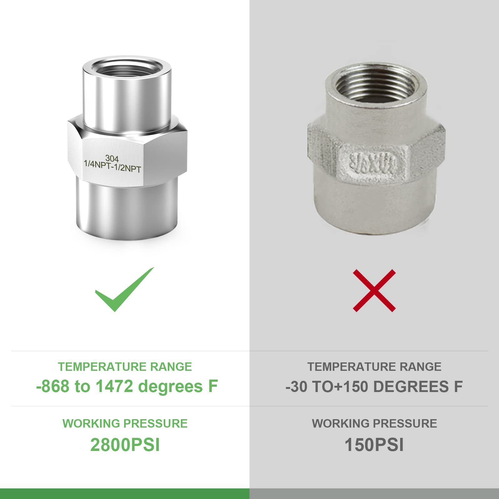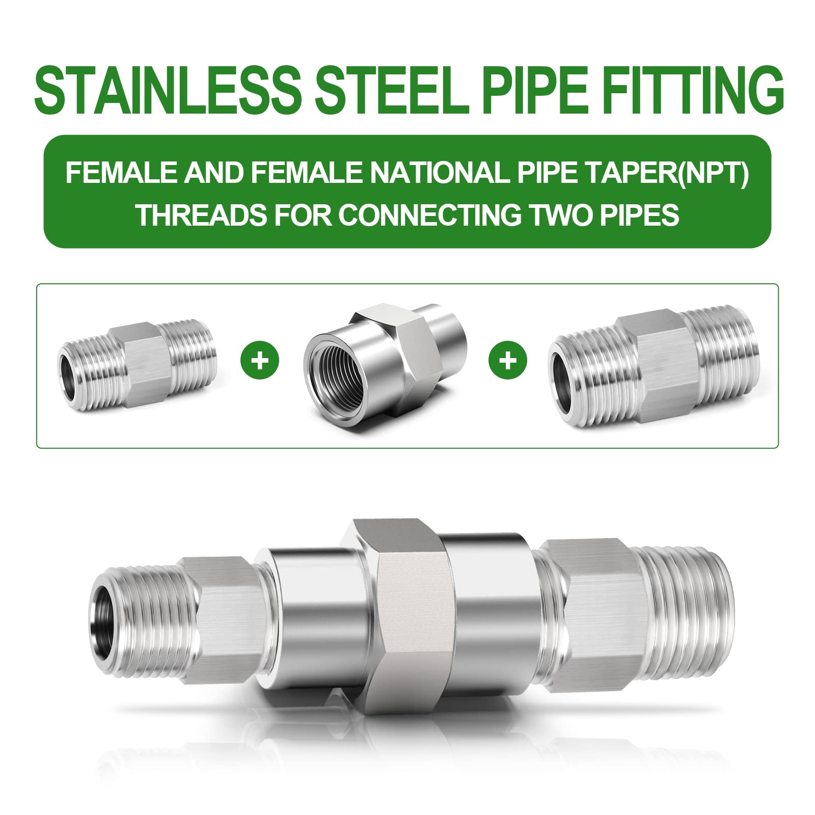 Product Type —— Coulping(1/2"Female NPT x 1/4"Female NPT) ,for industry connecting pipes or fittings with different end types, diameters, or materials,NPT thread size does not actual diameter, it is only nominal pipe size.