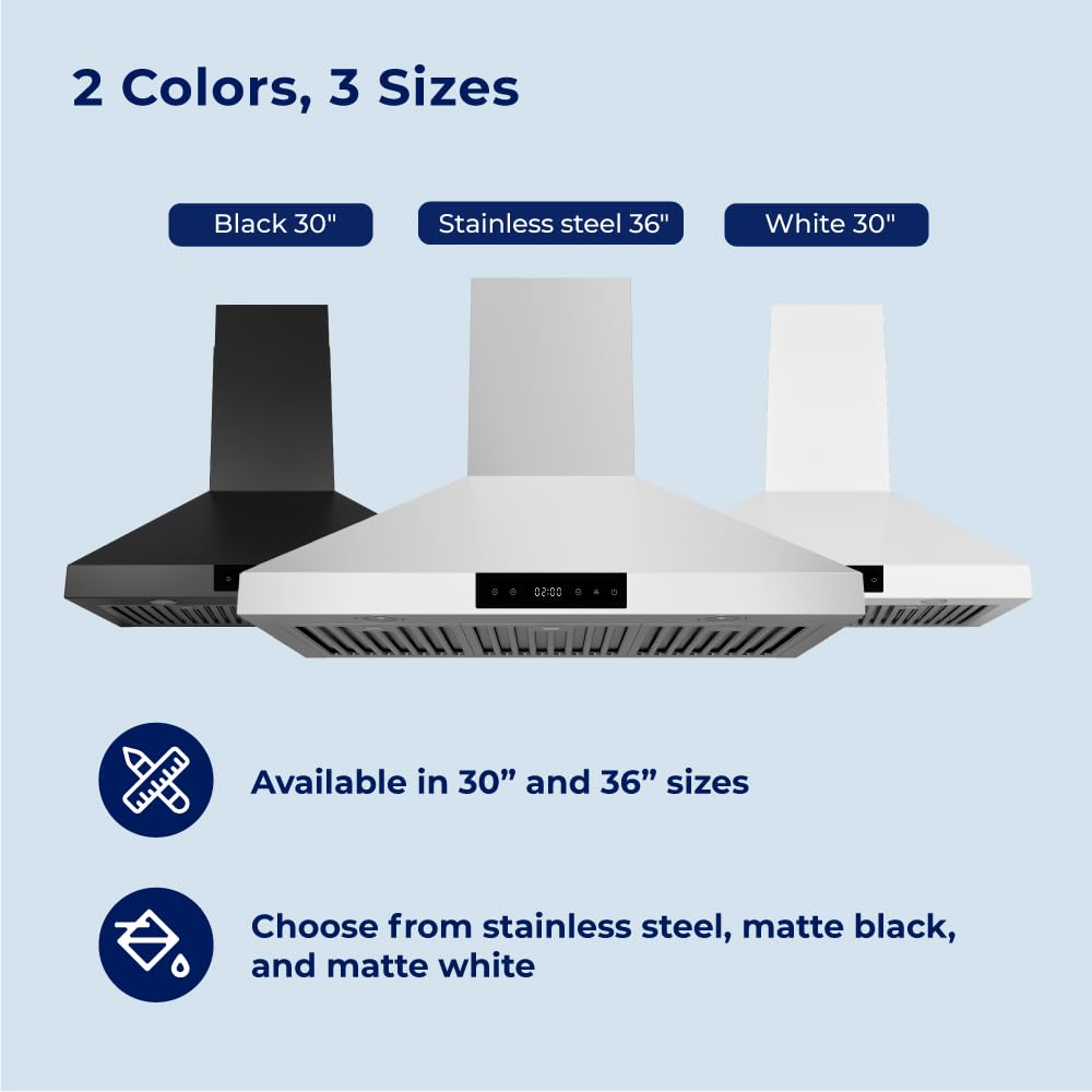 POWERFUL SUCTION: Lingering odors in your kitchen? A thing of the past. Prevent toxic and harmful chemicals with customizable ventilation and suction; this 30 inch range hood is ideal for heavy-duty cooking including heat, and smoke; boiling, steaming, poaching, braising, frying, searing, and sauteing.