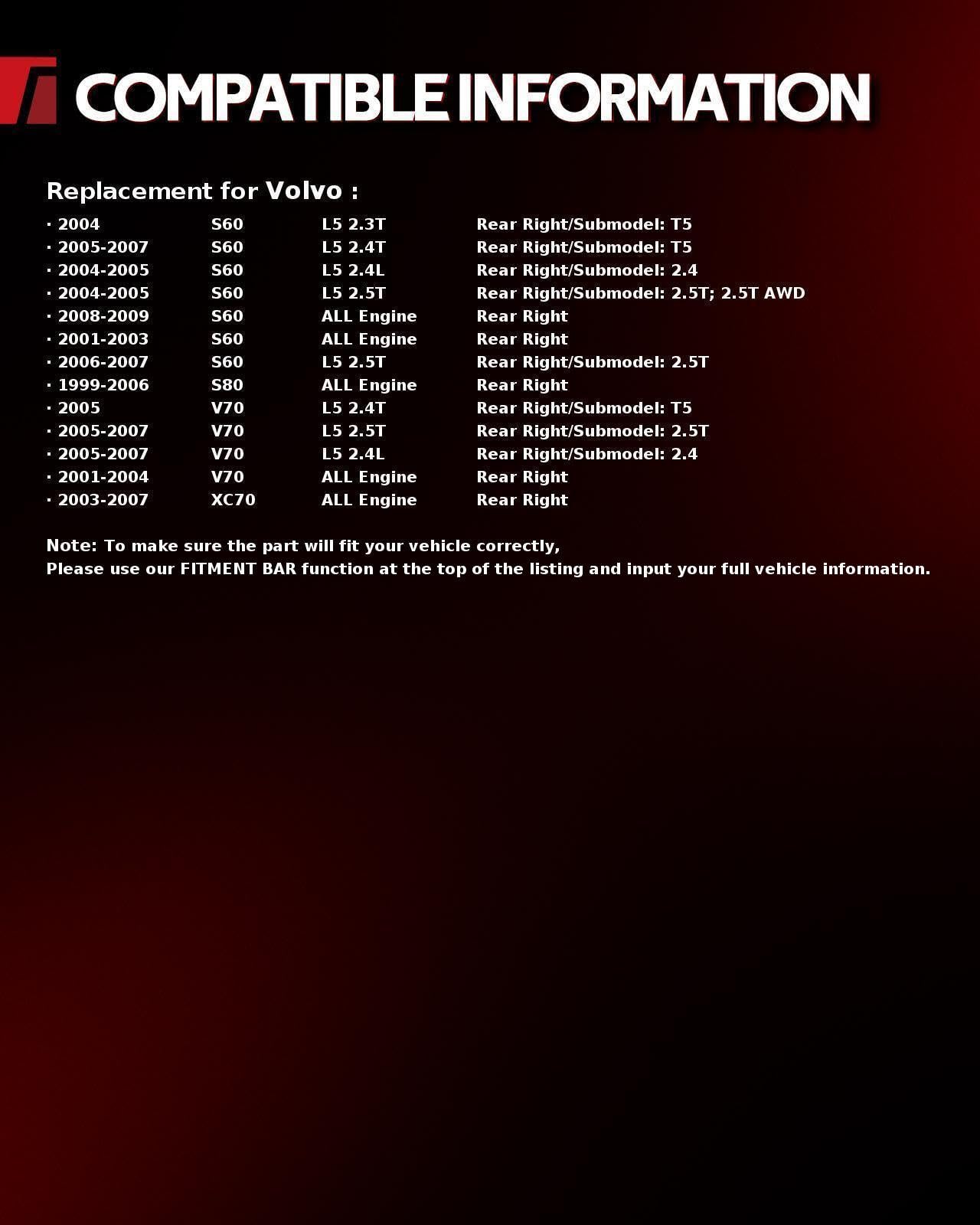 【Product Adaptation】:Torchbeam Rear Caliper for Volvo 2003-2007 XC70, Volvo 2004-2007 S60 2.5T, Volvo 2001-2003 2008-2009 S60, Volvo 2001-2004 V70, Volvo 1999-2006 S80, Volvo 2004-2005 S60 2.4L, Volvo 2005-2007 V70 2.4L, Volvo 2005-2007 V70 2.5T, Volvo 2005-2007 S60 2.4T, Volvo 2004 S60 2.3T, Volvo 2005 V70 2.4T