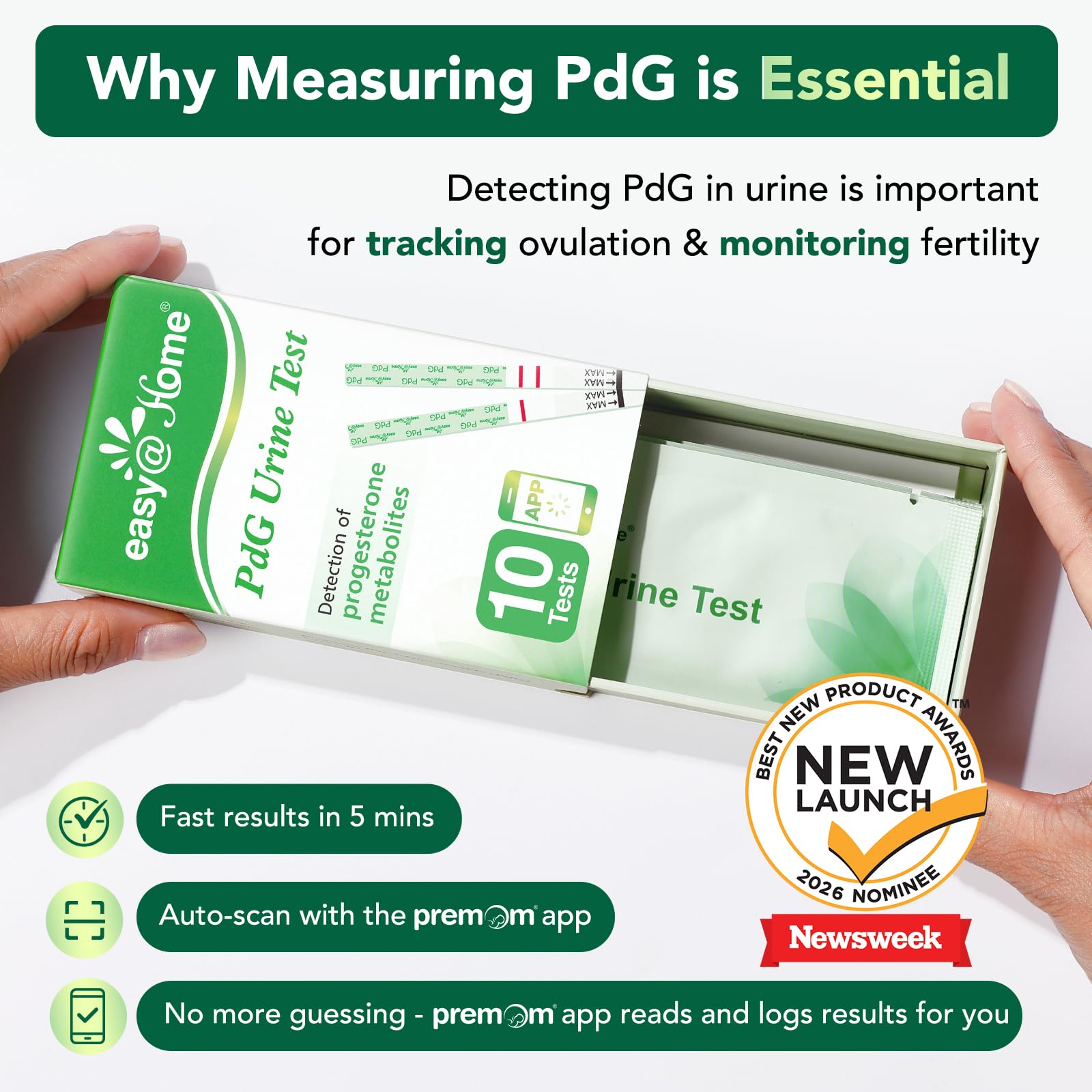 Track Ovulation with Confidence: Easy@Home PdG test strips offer insights into ovulation outcomes by detecting PdG (progesterone metabolite) in urine. Use with the Premom app for data-driven fertility tracking β a helpful tool to guide your conception journey