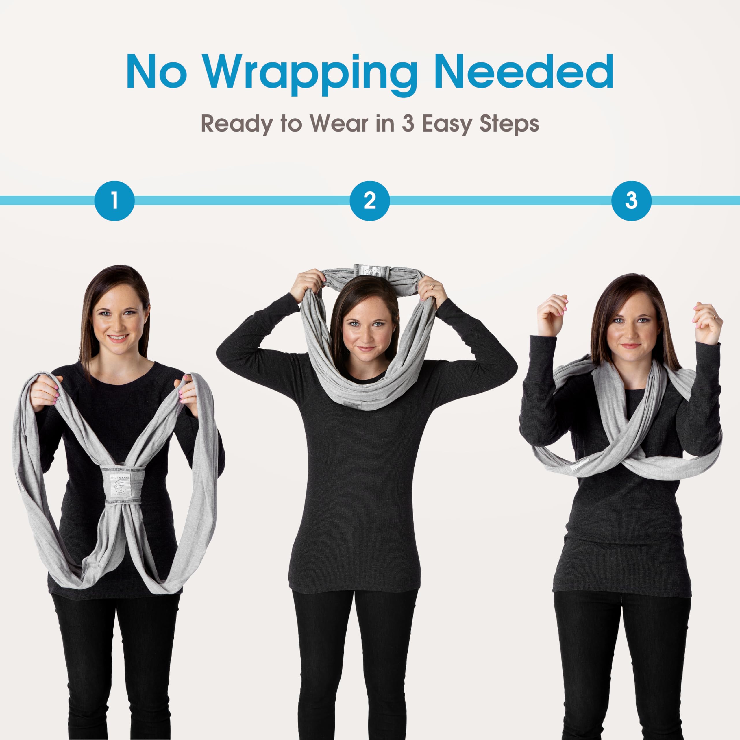 [A WRAP WITHOUT the WRAPPING] The Baby K'tan Baby Carrier is quick and easy to wear. No complicated straps or buckles! This carrier is a SIMPLE, wrap-style carrier that is pre-wrapped and sized for the parent, making it READY-TO-WEAR right out of the box. No learning curve. This carrier combines the benefits of a sling, wrap, and buckled carrier all into one, without any complicated wrapping or buckling! No rings, belts, buckles or excess fabric!
