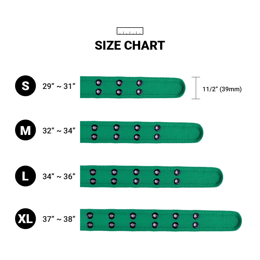 ● SIZES: The Canvas Double Grommet Belt is available in 4 sizes to fit every body type. S: 29"-31" waist; M: 32"-34" waist; L: 34"-36" waist; XL: 37"-38" waist. Wide: 1.5"