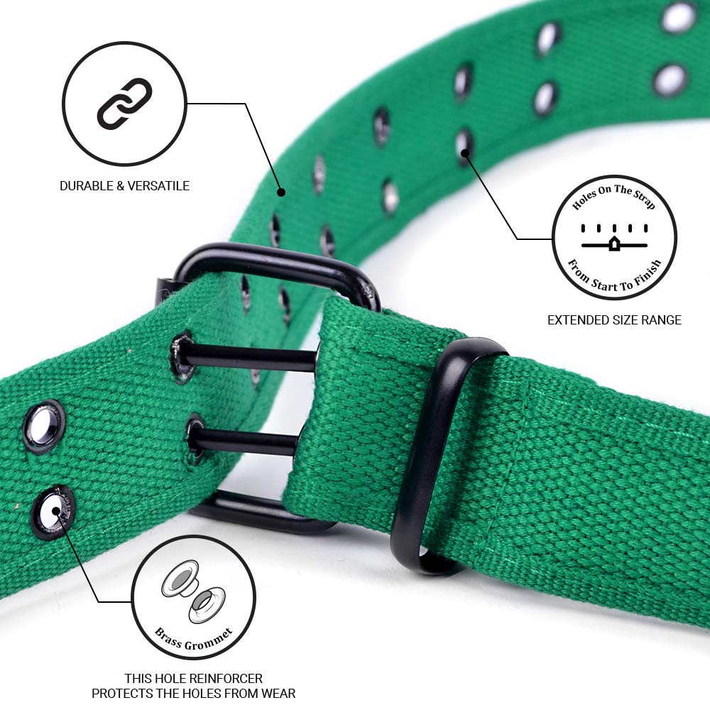 ● DOUBLE HOLE CANVAS BELT: The Grommet Unisex Belt its the perfect accessory for Men and Women. The casual style of the Canvas Belt makes it the right fit for every occasion.