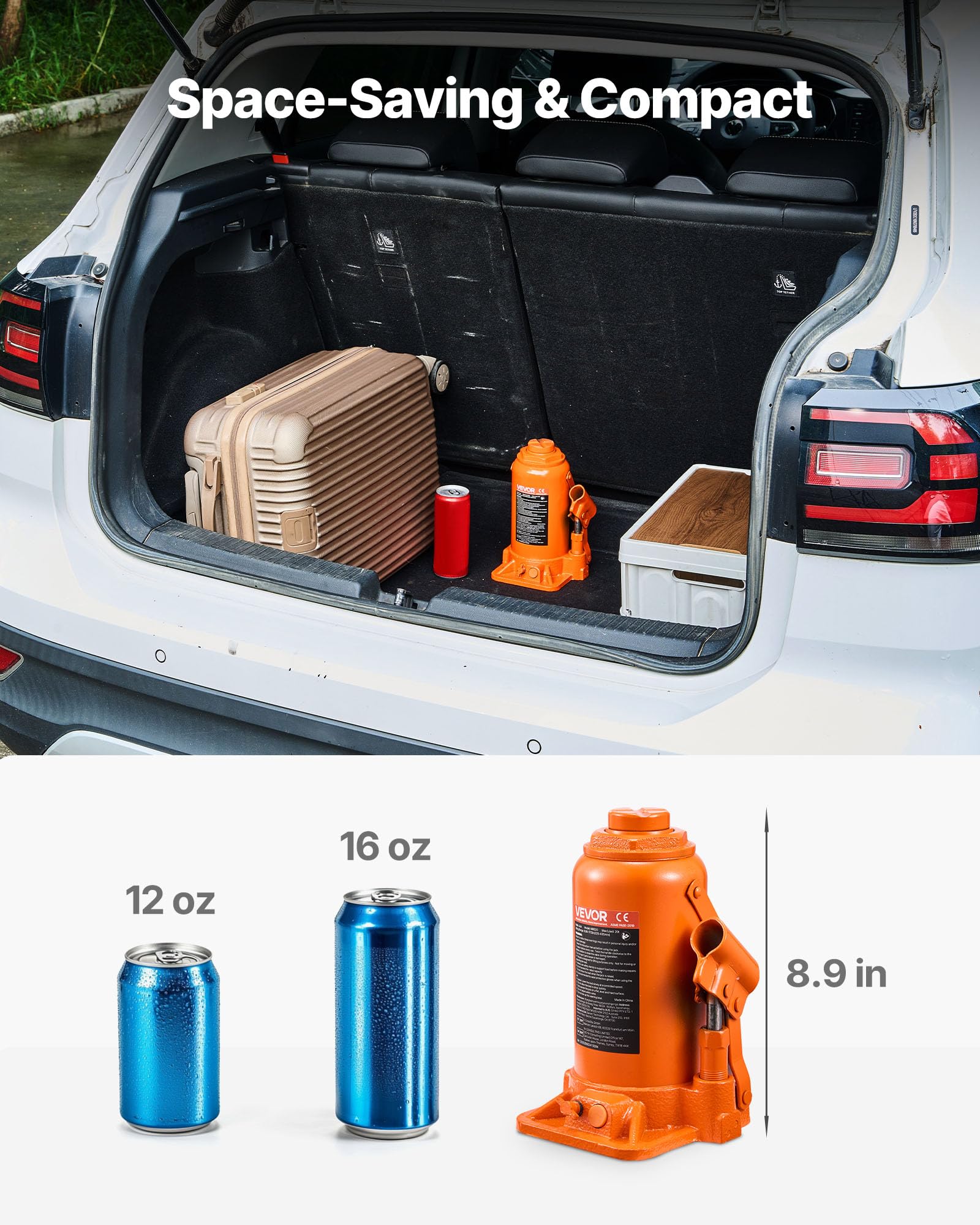 Safe & Leak-Free: The small bottle jack is made from durable materials with a solid saddle that stays steady. The built-in valve helps avoid overloads, and the welded body with rubber-sealed oil port means no messy leaks over time