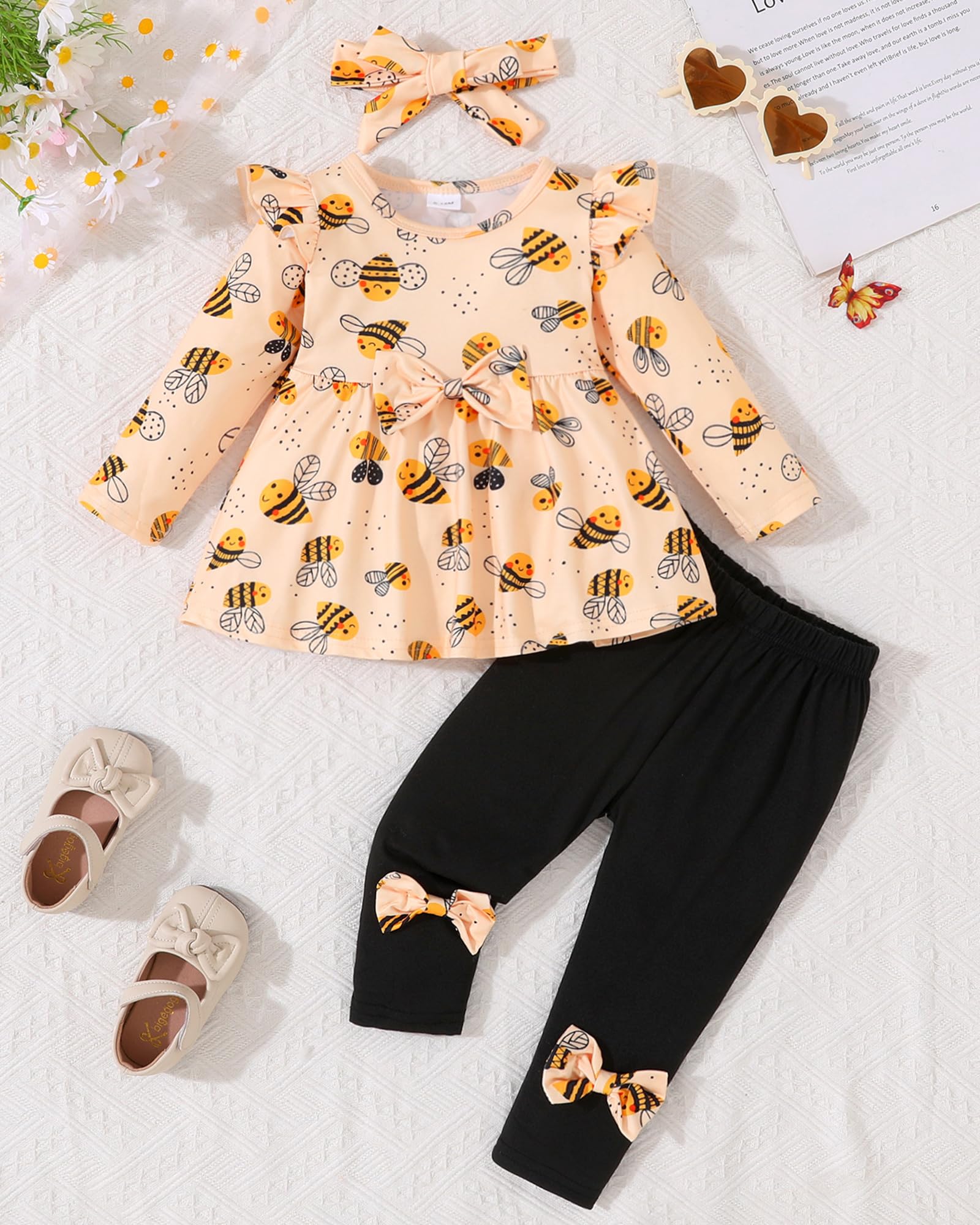 Baby Item Set 3pcs Package Included: 1 x cute bow shirt+ 1 x stretchy soft pants + 1 x pretty headband.