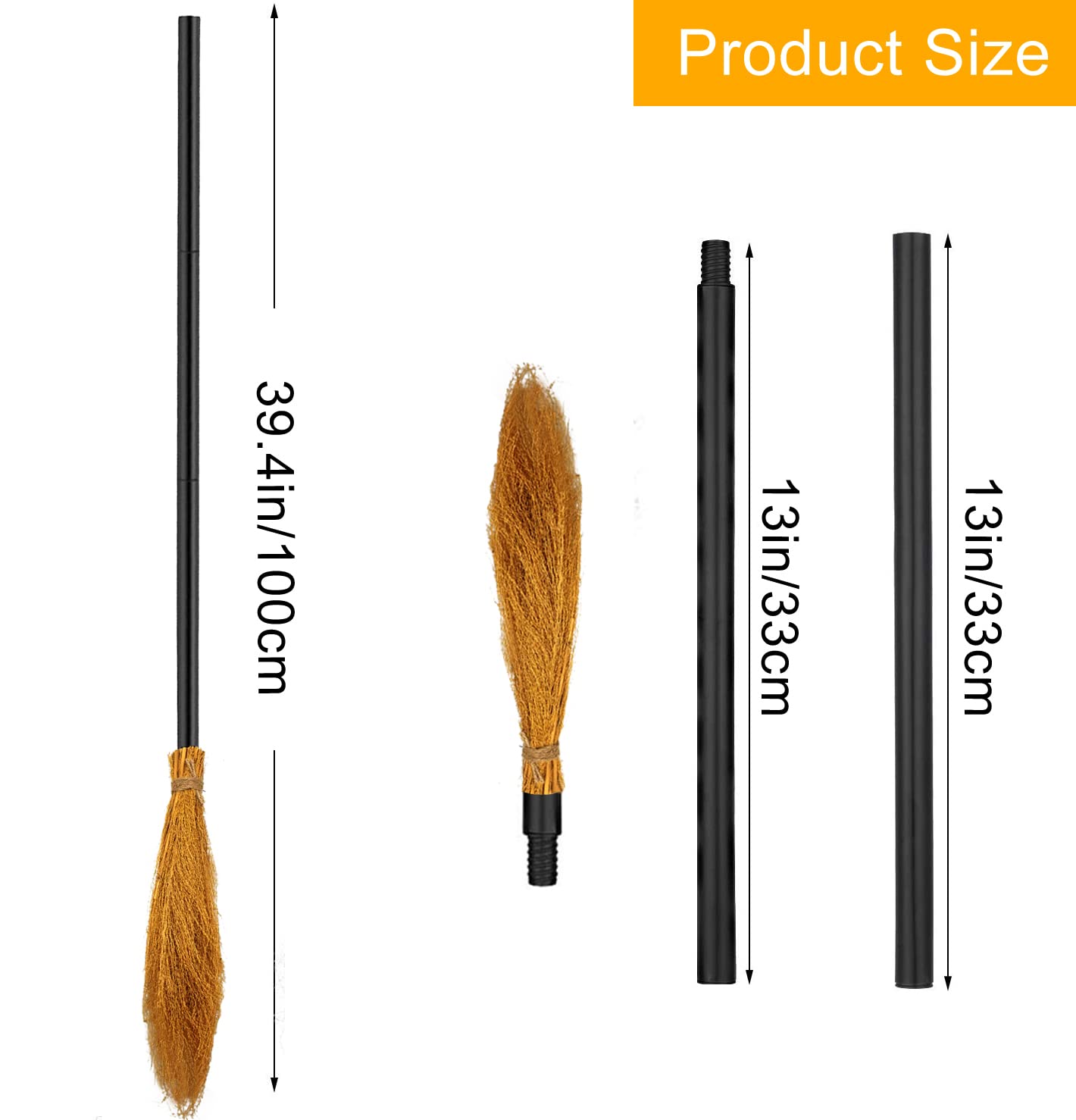 Size details: the broom is lightweight, measures 39.5", and can be collapsed to 13" for easy storage and reuse. proper size for most people to use, and also you can match them with your clothes such as hats, jackets, pants or other cosplay clothing