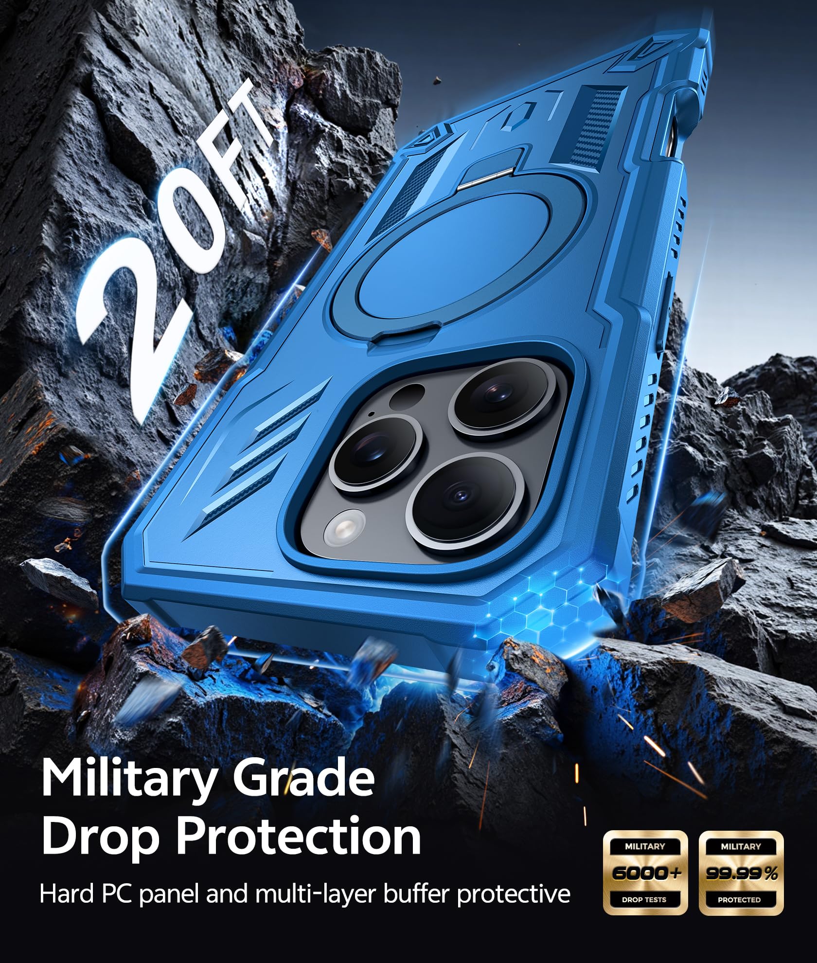 20FT Military-Grade Drop Tested:Certified to pass rigorous 20ft Military-Grade Drop Testing. Whether it's an accidental drop in any scenario (4-5ft), the upgraded 4-corner airbags and TPU material work together to provide 360 cushioning. Compared to silicone cases, TPU offers better shock absorption and impact resistance, providing fortress-like protection for your iphone 16 pro max