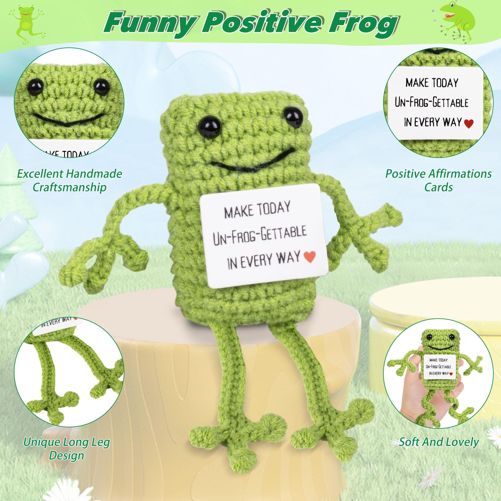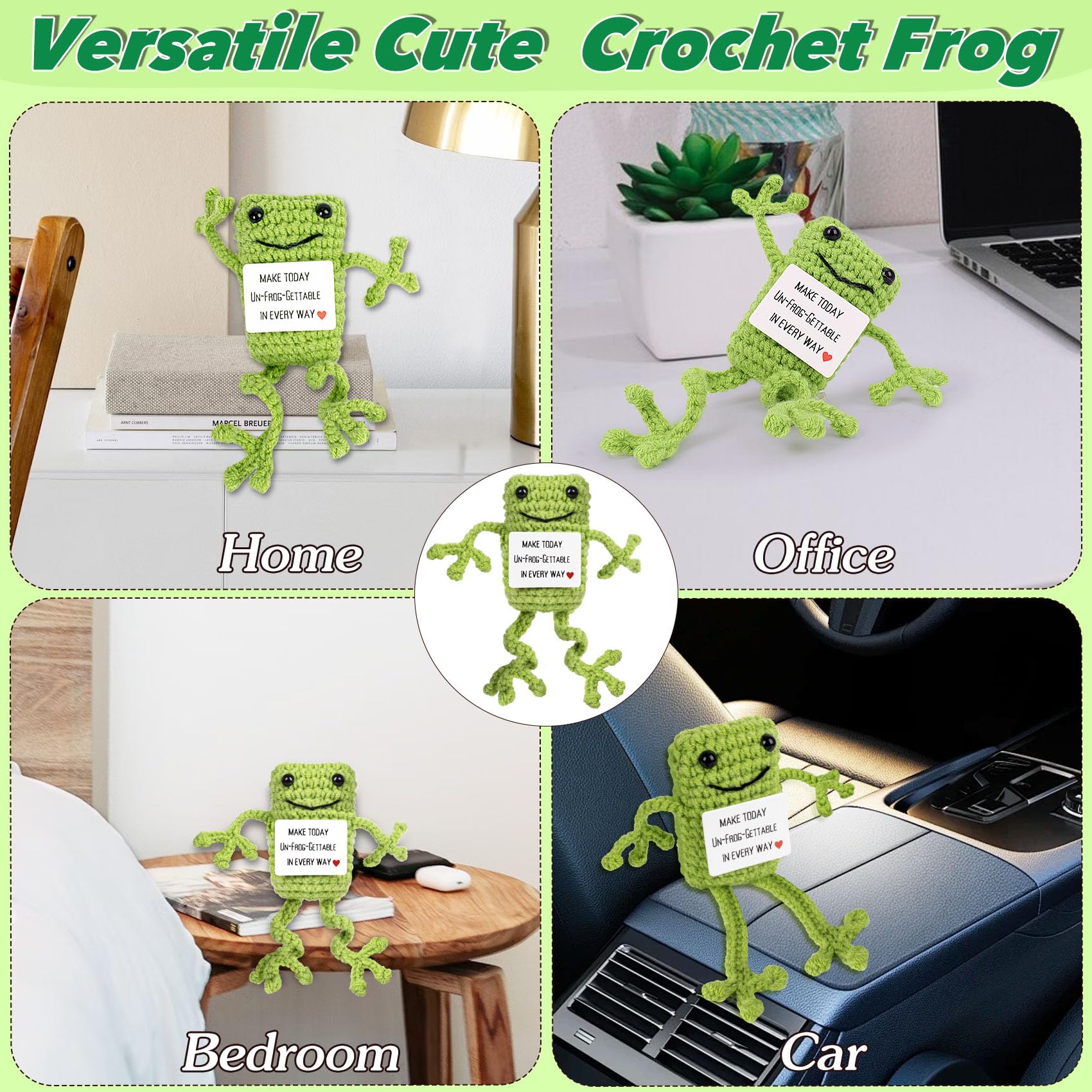 Bring Joy to Your Day: Our positive energy frogs cards with sweet words of encouragement, you will feel relaxed and happy when you see them after a hard day's work. So when you feel lost and upset, just take a look at our frogs decoration! Interesting cute stuff bring warmth and strength to people. Crochet frogs ornament lets you be surrounded by happiness and joy, happy every day