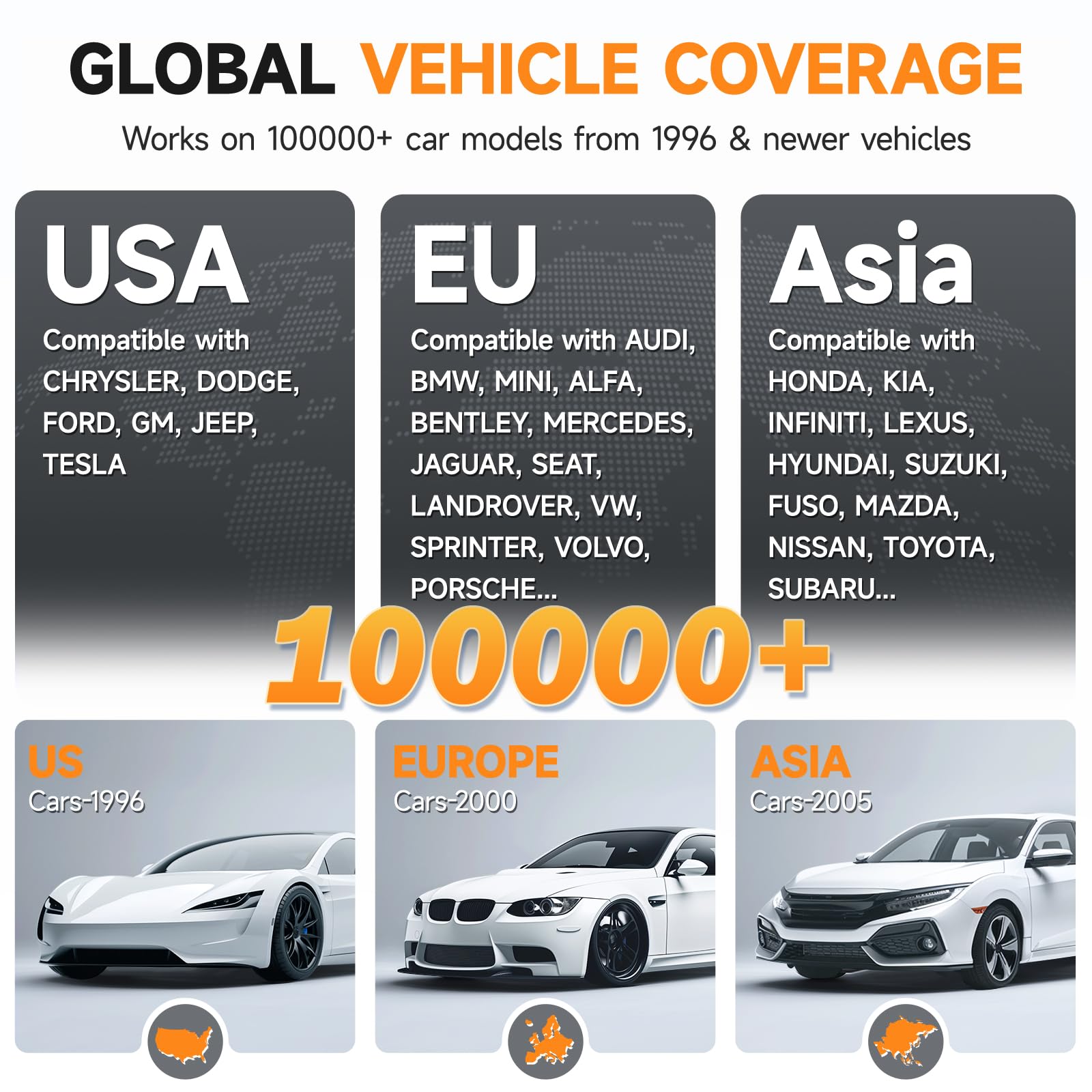[OBDII Protocols & Compatibility] The NT301 supports OBDII protocols like KWP2000, J1850 VPW, ISO9141, J1850 PWM and CAN. The device is compatible with 1996 US-based, 2000 EU-based and Asian cars, light trucks, SUVs. Kindly check the vehicle compatibility before the purchase since the function comatibility and car compatibility vary from different car models, year and vin.