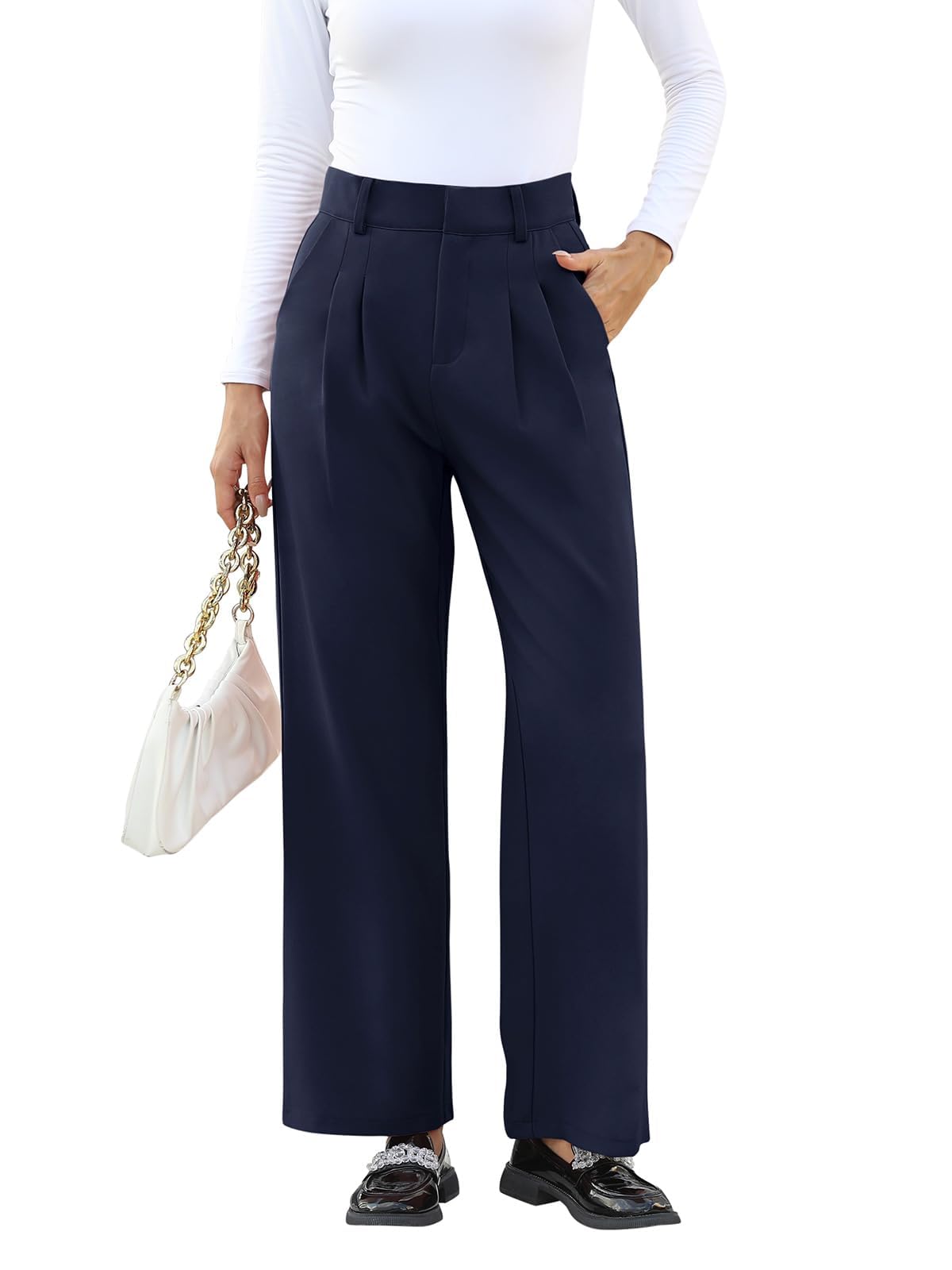💗 Features: The front pleats add a fashion sense. The straight leg pants will work even If you are curvy or have thick calves and thighs. Side pockets are deep enough to hold your phone and wallet. Decorative fake pocket on the back make your hips look better.