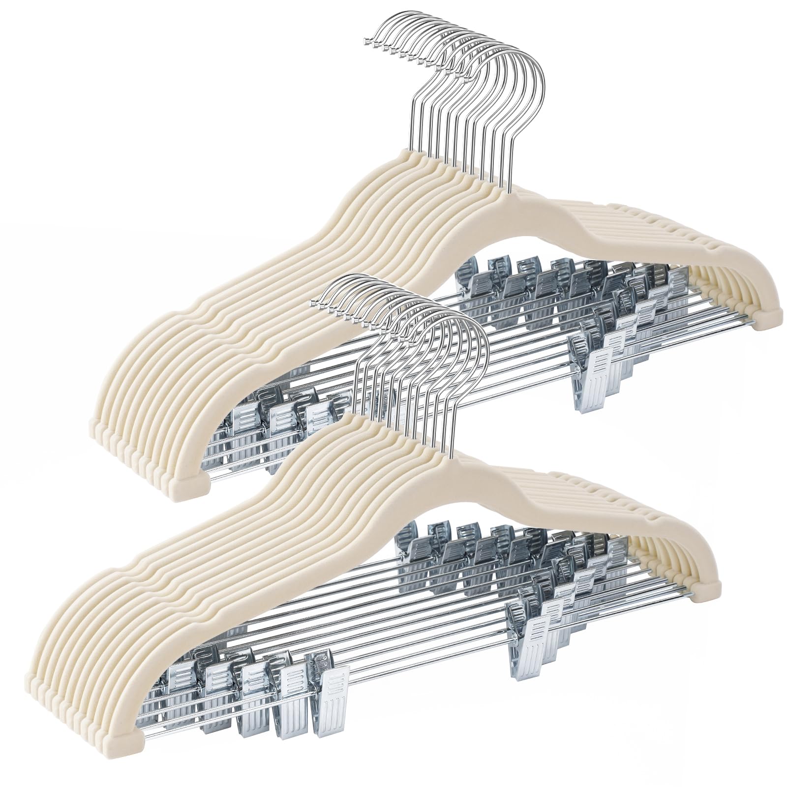 Product Description Amazon Basics Slim, Velvet, Non-Slip Clothes Suit Hangers, Ivory/Silver - Pack of 50 From the Manufacturer AMZSM