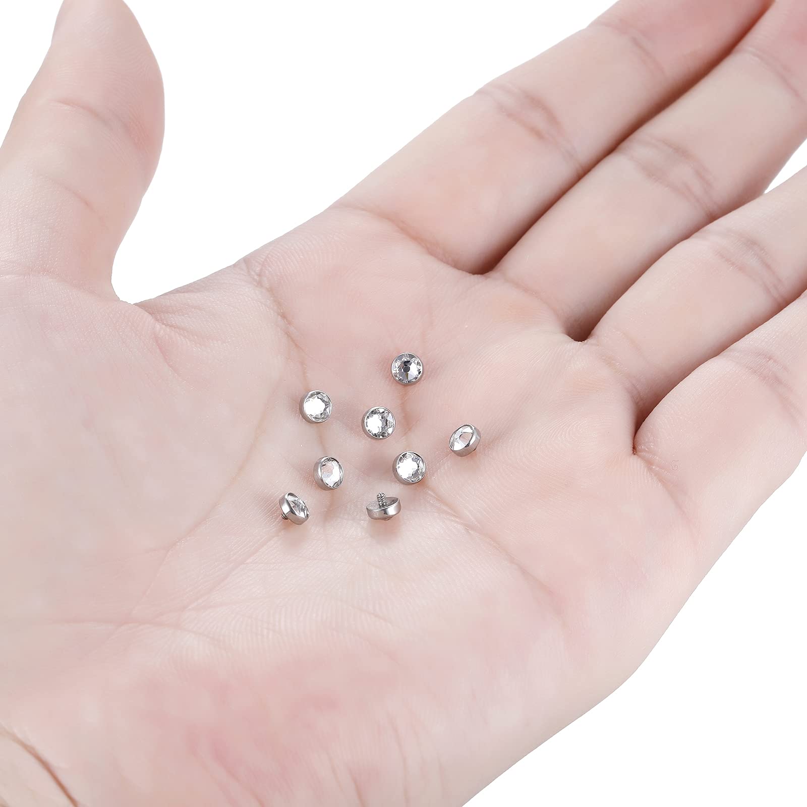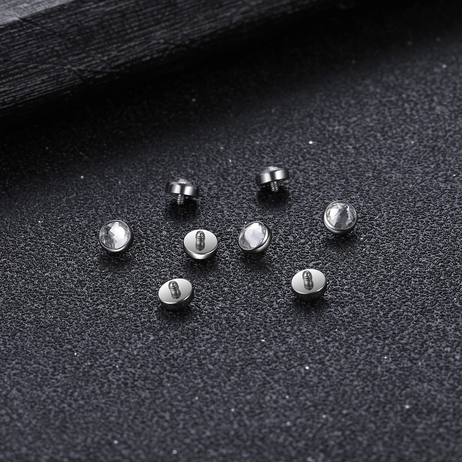 Size: The gauge of the internal thread is 1.2 mm. Compatible with 14G(1.6mm) dermal anchors base. Round crystal top size is 3mm, 4mm, 5mm, Please choose the suitable size for you.