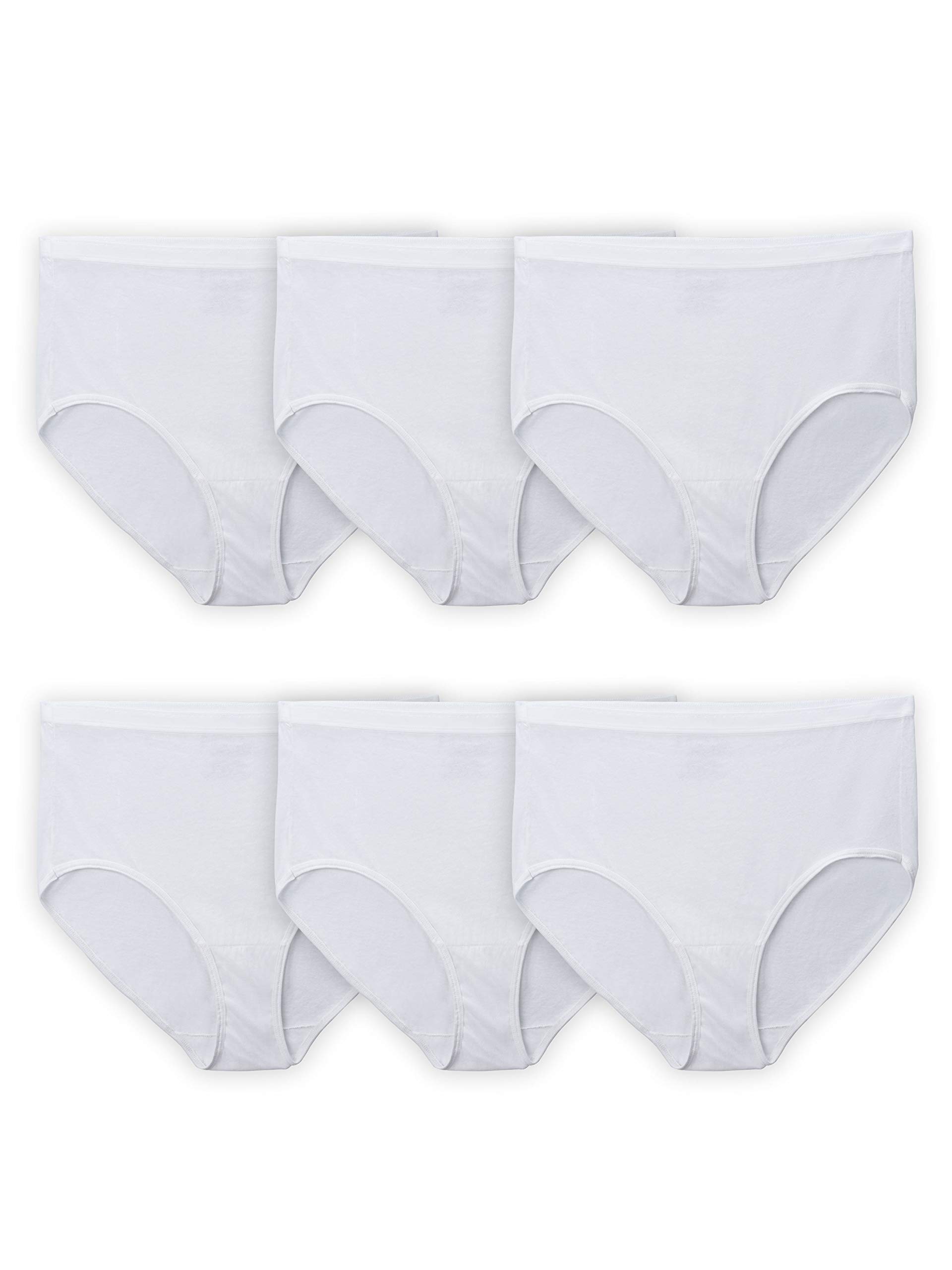 Description Start your day full of confidence with these Fruit of the Loom's fit for me cotton briefs. Designed for women with curves, fit for me cotton panties are great basics for everyday wear. You can feel your best knowing that these panties are specifically designed to fit your shape and now feature an improved fit and soft, plush waistband for ultimate comfort. Made to last, the waistband is guaranteed to stay ravel free wash after wash. As always, our Fruit of the Loom panties are tag free and made with a 100% cotton liner for added comfort. The classic brief silhouette sits just below the belly button and provides full seat coverage. Stock up on these wardrobe essentials with our convenient 6 pack!