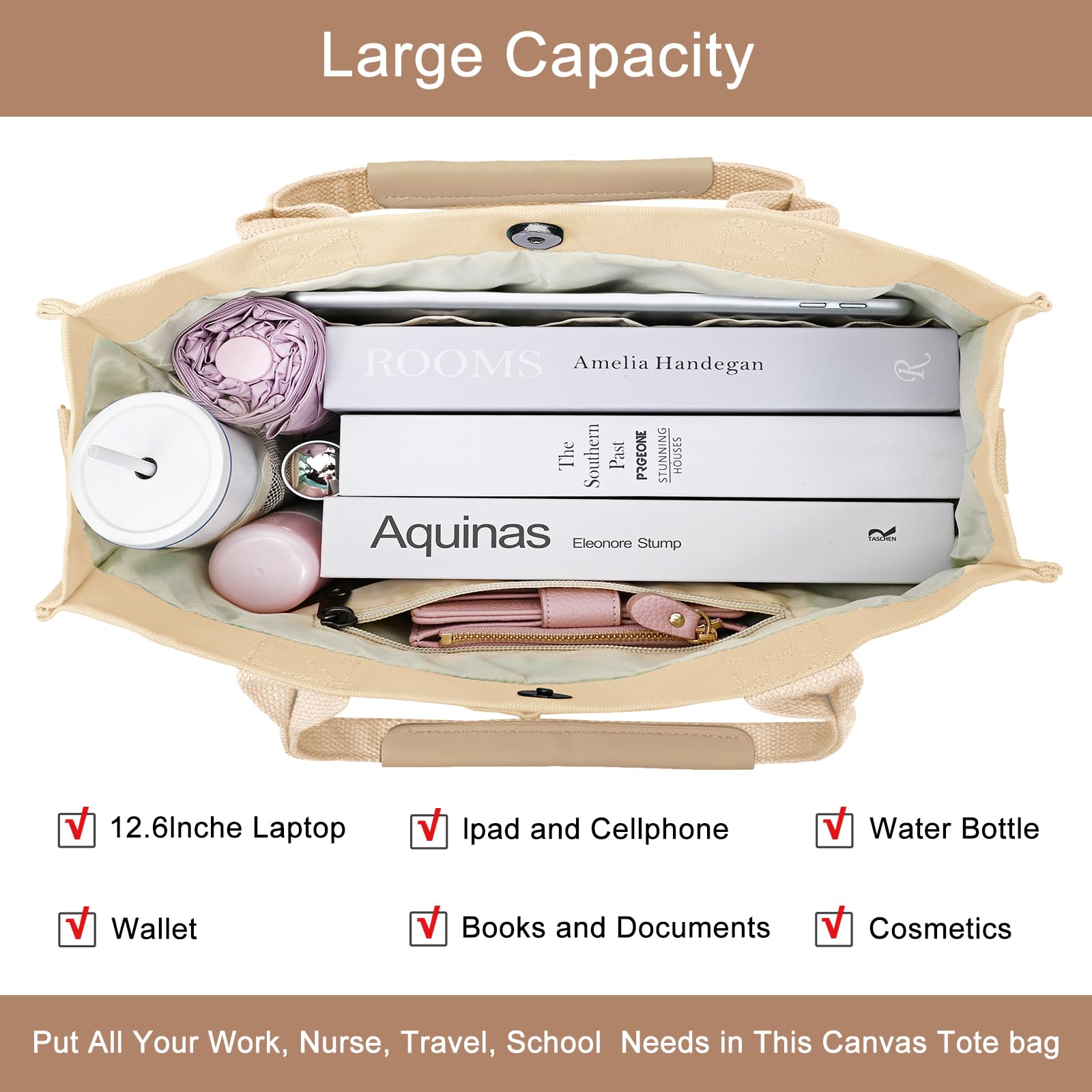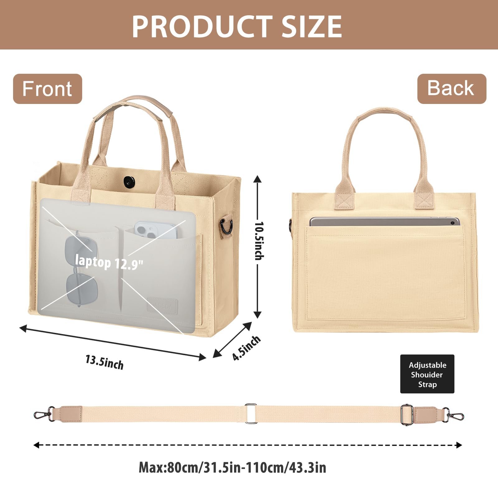 Adjustable Detachable Strap & Wide Application: Equipped with comfortable top handles and a removable adjustable shoulder strap, allowing hand-held, shoulder and crossbody carrying styles. Suitable for of fice work, school, travel, shopping, nursing, teaching and daily use. It is also an ideal gift for friends, family, colleagues and busy moms.